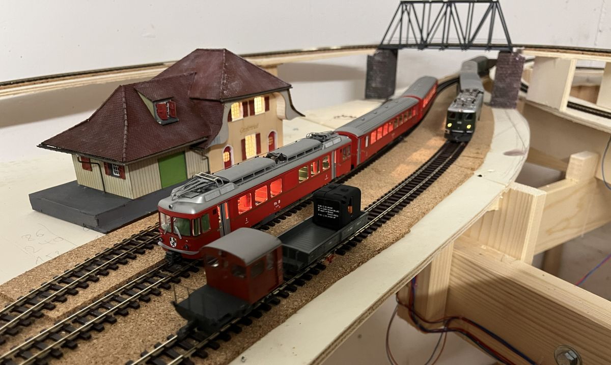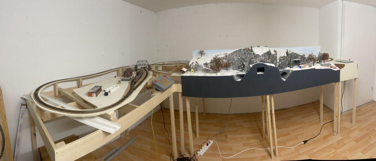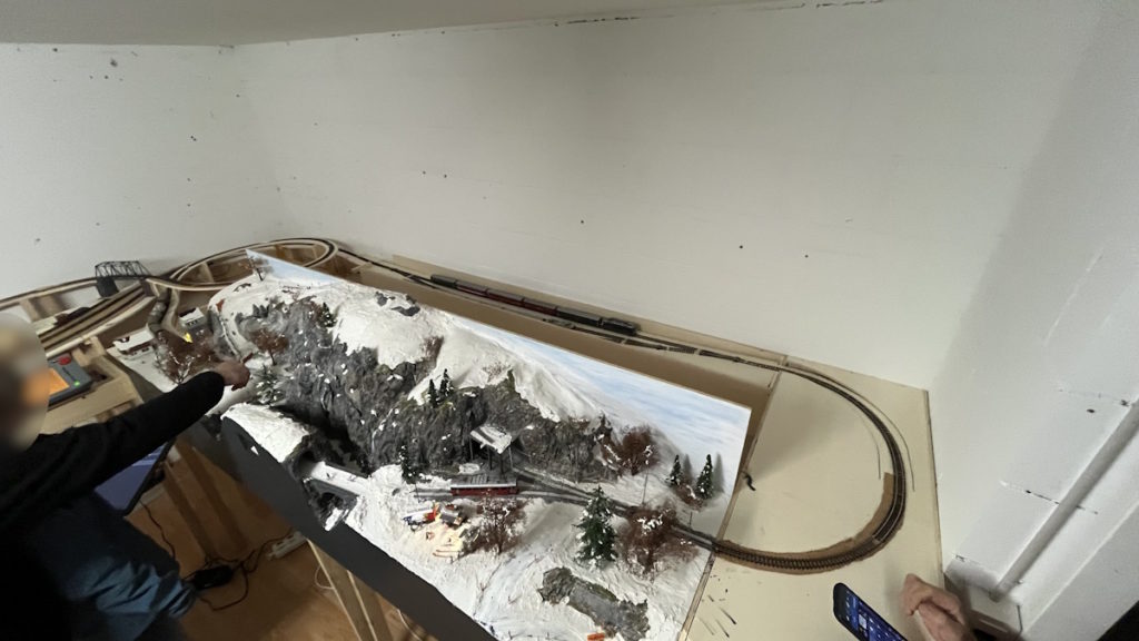 Je dispose depuis quelques mois d’une cave dans laquelle je vais pouvoir installer mes trains. Je prévois d’y installer d’une part un réseau N/Nm et d’autre part H0/H0m. La première partie que j’ai mise en service est celle du H0m. Cela me permet d’intégrer mon module hiver de l’odyssée des 4 saisons. Le week-end passé j’ai invité quelques amis à assister à l’inuaguration officielle de la partie technique.