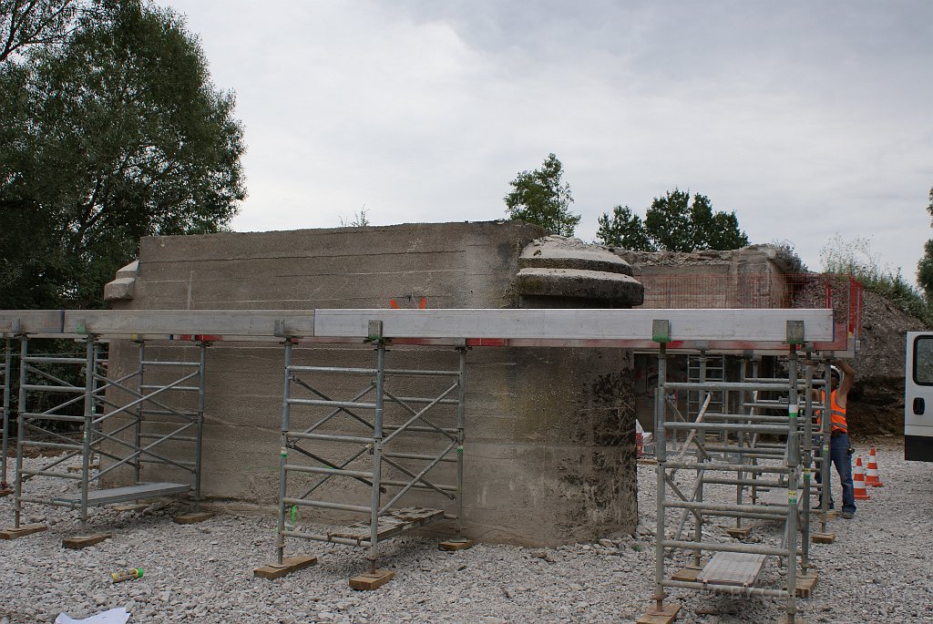 149 La partie basse des piles de l'ancien pont était encore bonnes et ont été gardées, mais le haut, reconstruit après la 2ème guerre mondiale était trop friable et a été remplacé par ces coiffes de béton.