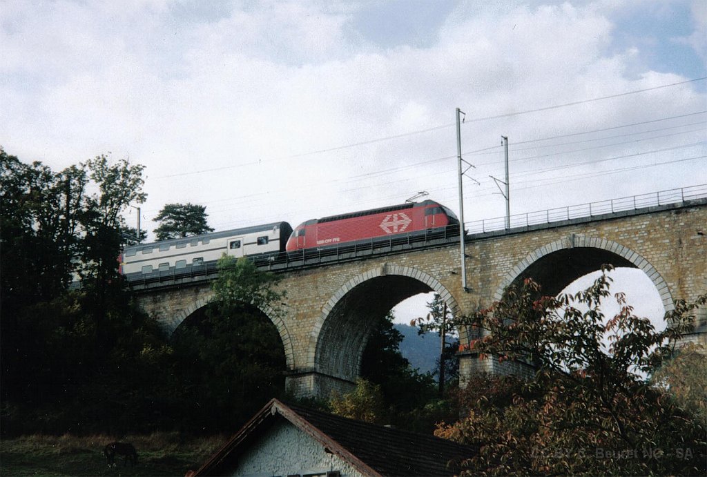 2 Photo rare: Re 460 avec IC 2000 sur le pont de Boudry durant l'Expo.02