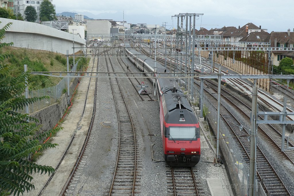38 Depuis que les ICN roulent sur le pied du Jura, il est rare de voir une Re 460 à Neuchâtel. Trai spécial salon de l'auto