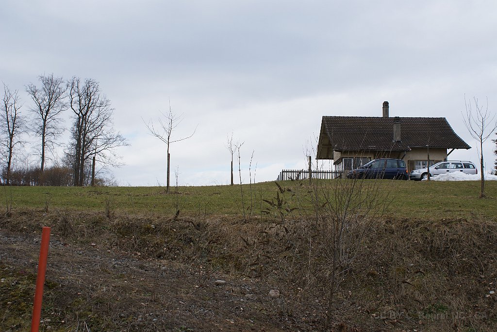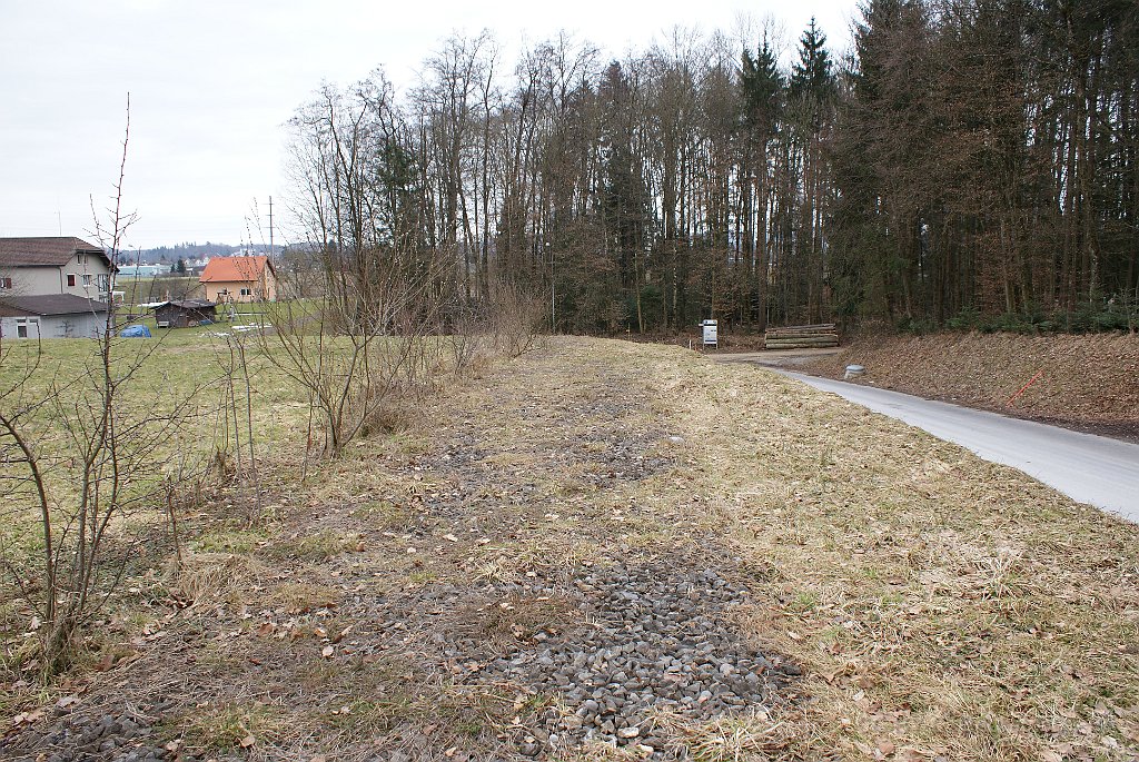 18 Entre Subingen et Etziken, le tracé a été corrigé. L'ancien tracé longeait la rivière qui coule au pied du rideau d'arbres alors que le nouveau passe à droite