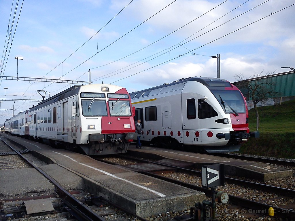 6 Belfaux-Village, croisement entre une navette RBDe 567 et une flirt