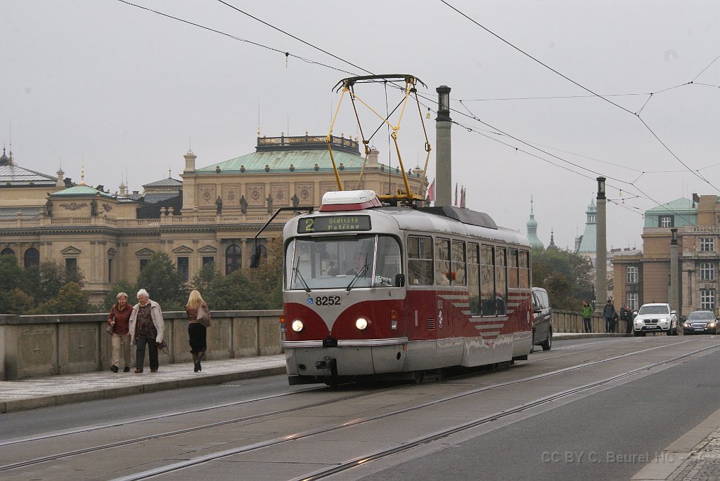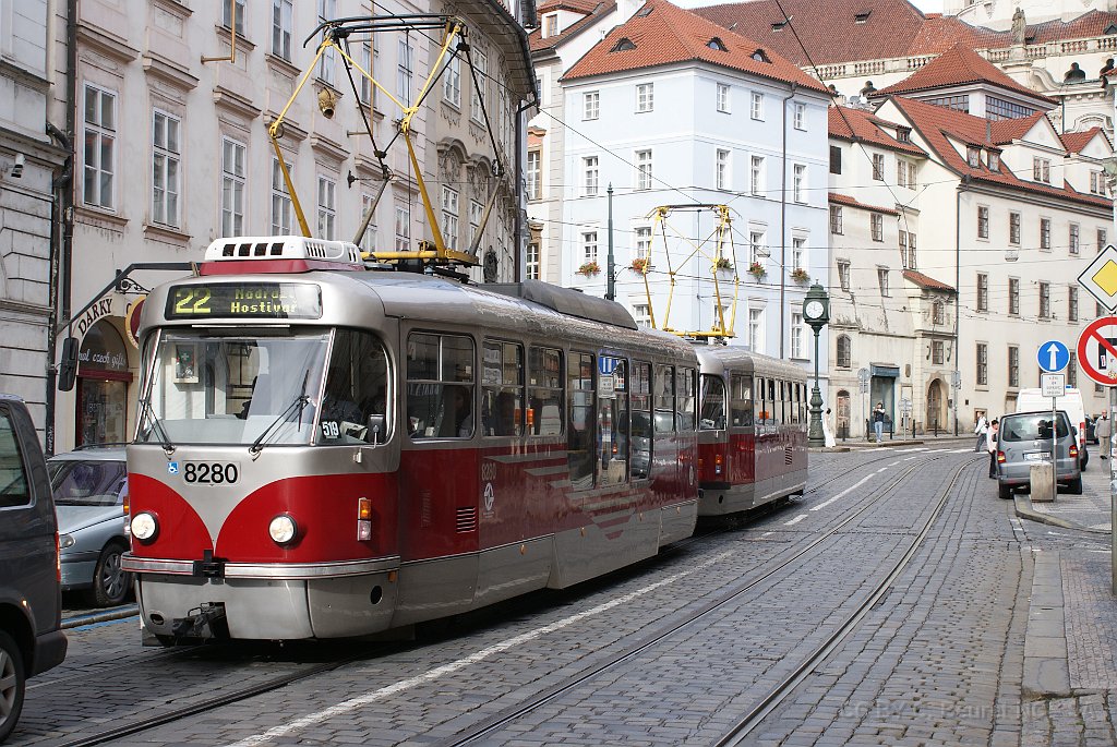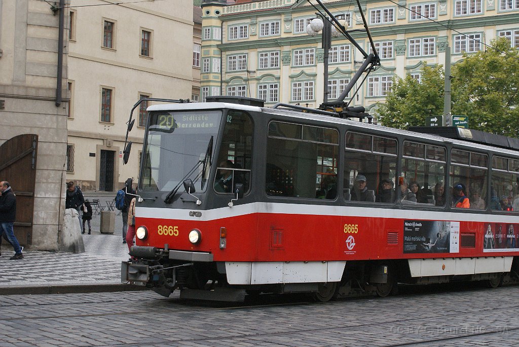 DSC20483  Arrêt Malostranské náměstí avec deux générations de tram sur la ligne 20: un ČKD type T6A5 et un Skoda 15T, dernière génération de trams
