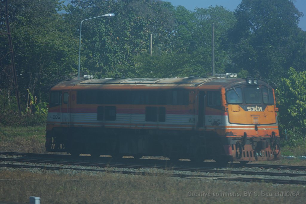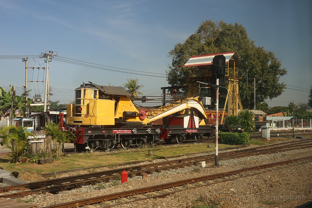 Ligne à grande vitesse en construction. Il s'agit d'un projet Sino-Thaï. Première étape en construction, Bangkok–Nakhon Ratchasima Bourreuse à  Ban Phachi Junction Grue en gare de Pak Nam Pho Une UM12C à Aila At Wagon d'accompagnement pour train de marchandises