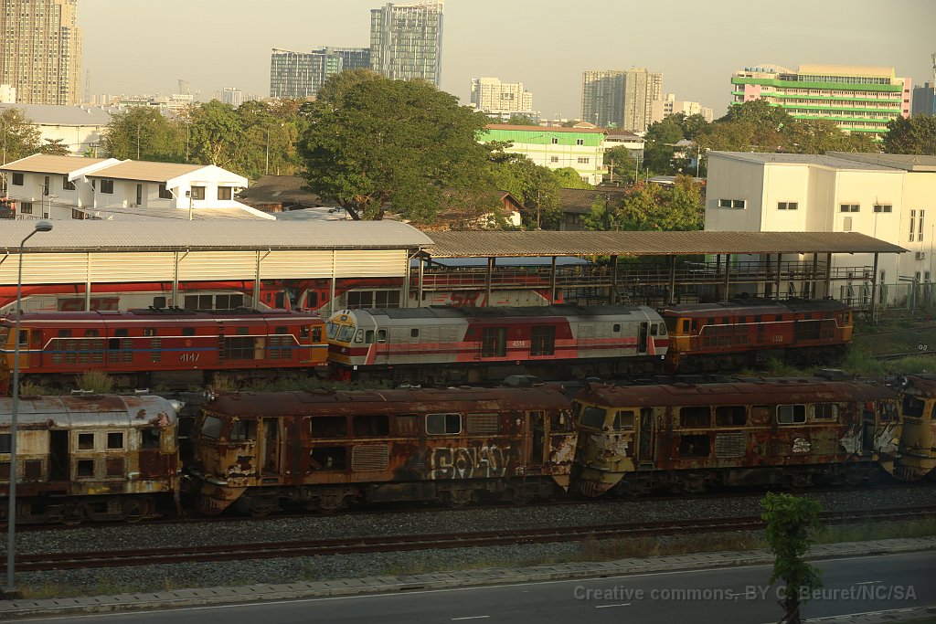 Locomotive de la série AD24C A côté de machines hors service de la série 3000, une 8FA-36C entre deux AS24C Locomotives au dépôt près de la gare principale de Bangkok (Krung Thep Aphiwat) Les locomotives les plus récentes sur le réseau Thaï sont les QSY 5200 de fabrication chinoise et livrée en 2022-23 Automotrice de la série APD 60 partant sur la Southern Line depuis Bangkok Voitures sur une voie de garage à Ayutthaya