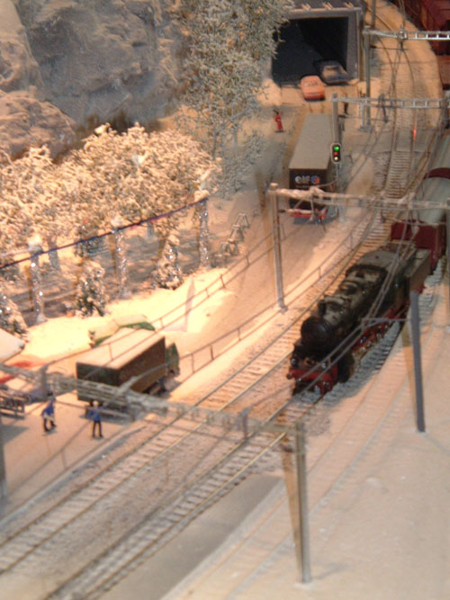 Vue de la gare du module "hiver" avec Eurocity tracté