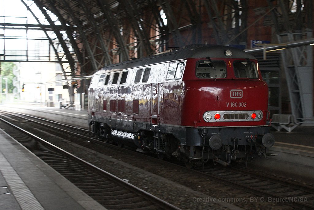 6 V160 002 de passage en gare de Bremen. La locomotive historique en état de marcghe est stationnée à Osnabrücke et maintenue en état par les Osnabrücker Dampflokfreunde