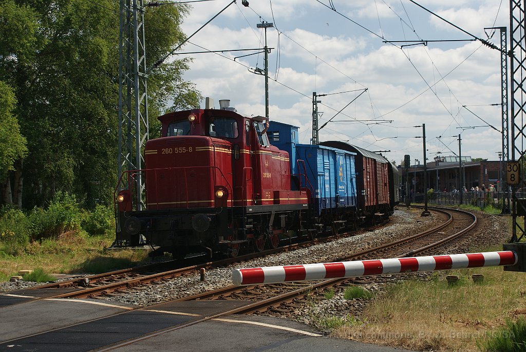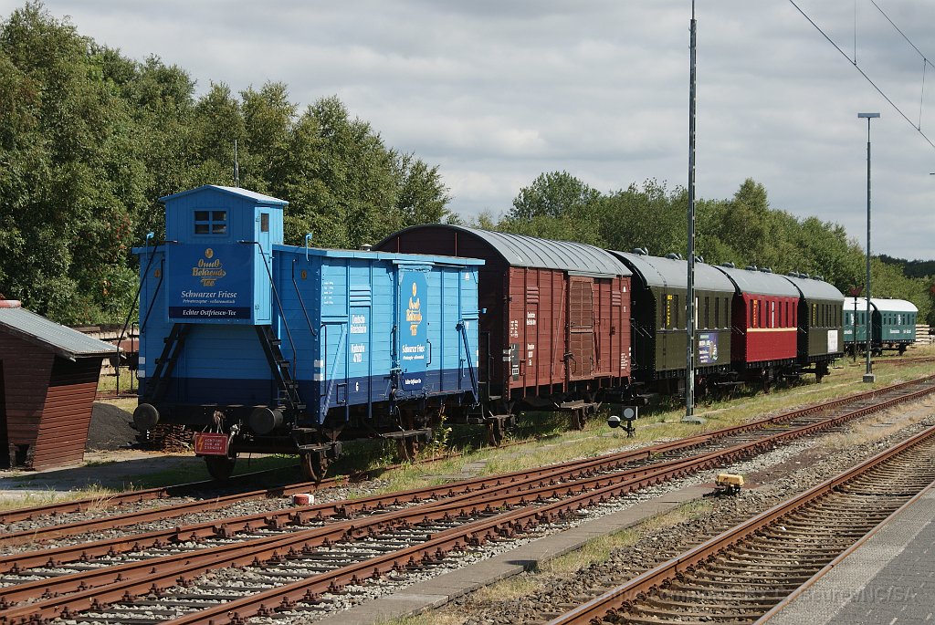 Rame du train musée Ostfriesland Küstenbahn à Norden Tracteur avec grue à Norden Petit véhicule de transport Le carburant du diable... Deux boîtes à tonnerre du chemin de fer musée Ammerland-Saterland à Norden (le MAS n'est pas très éloigné du MKO) V60 arrivant à Norden avec son train