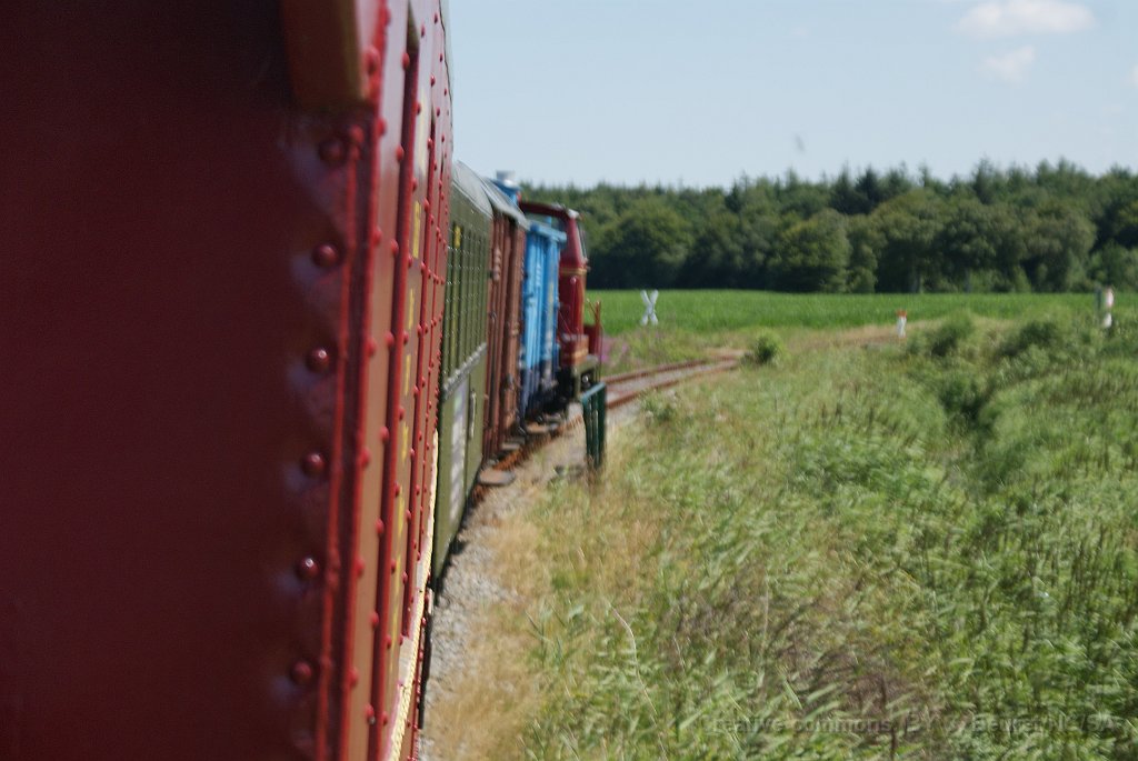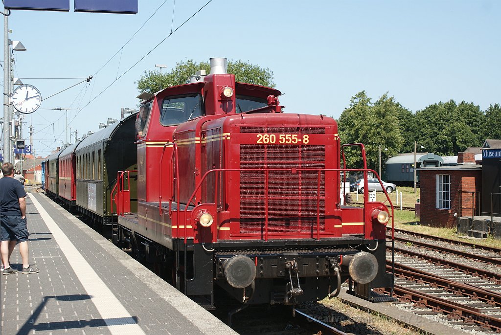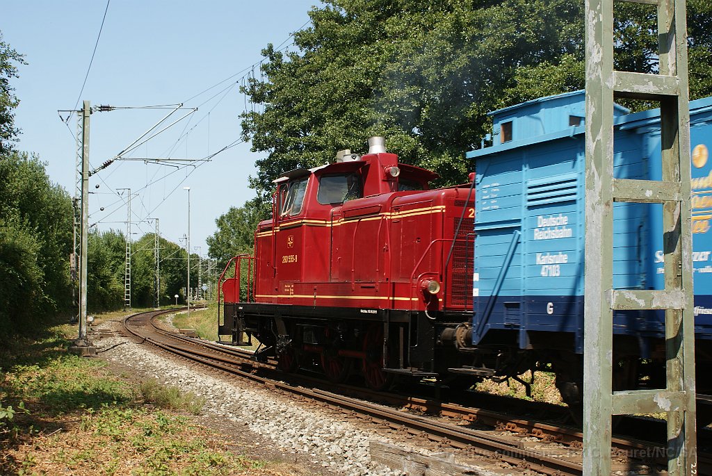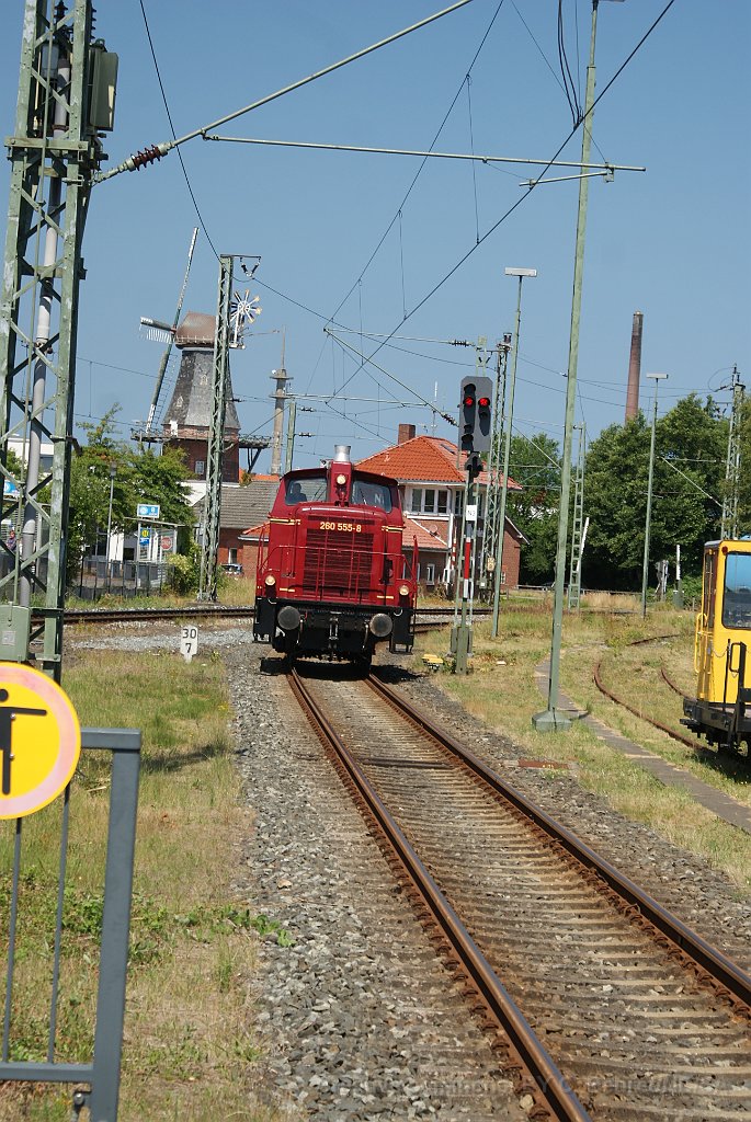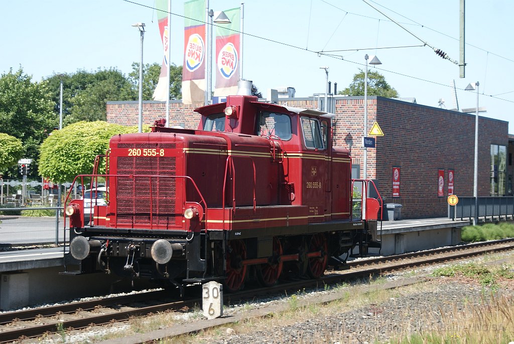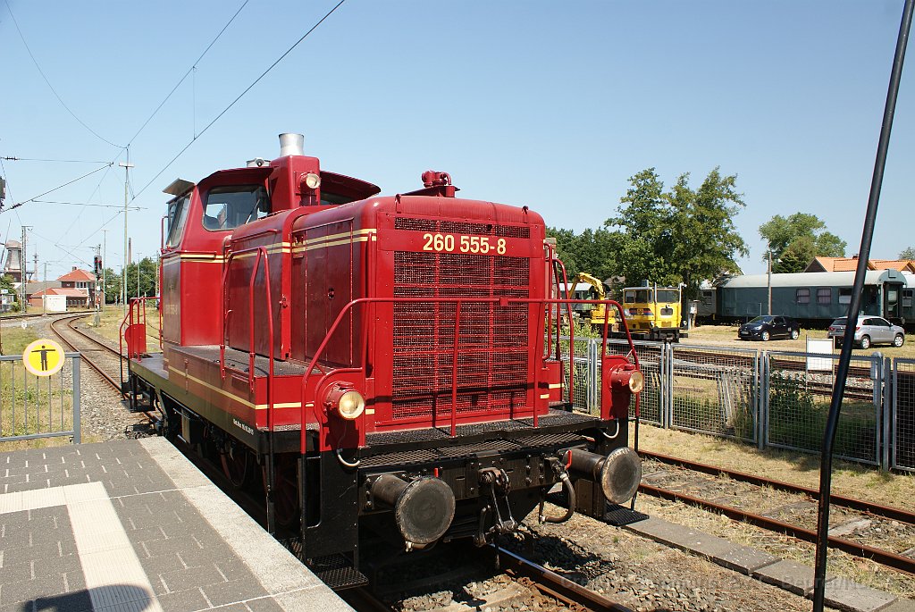 La V60 est manoeuvrée pour repartir en direcrion de Dornum Passage sur voie 1 Gare de Norden La locomotive revient se remettre en tête du train LA V60 555. Entre Norden et Schloss Lütetsburg