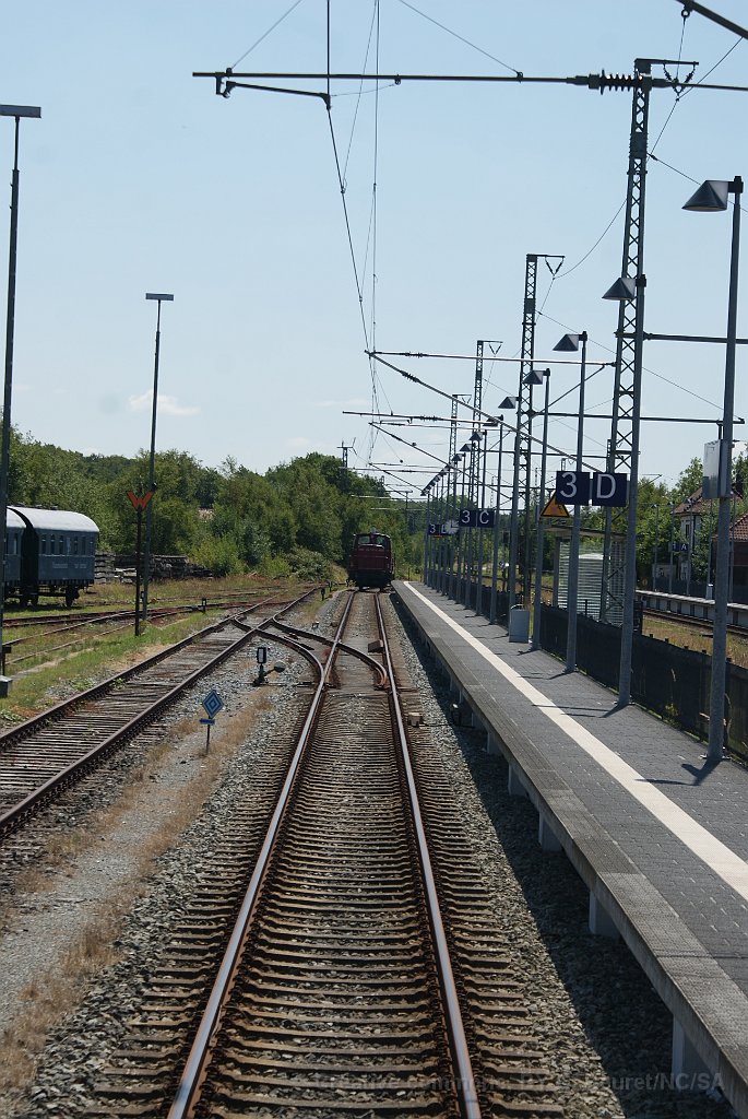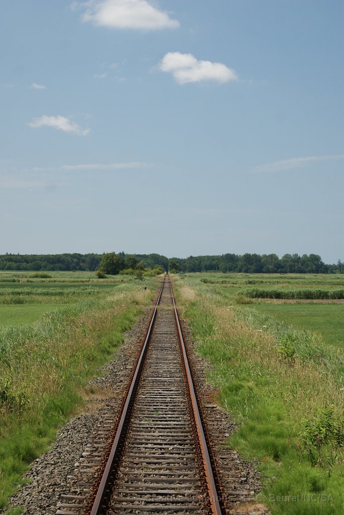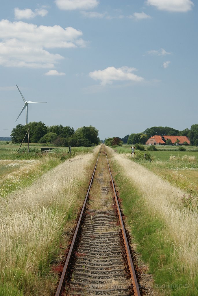 Entre Hage et Dornum Un quai d'une petite halte intermédiaire. Tout droit, tout plat... Un train quittant Nroden direction Dornum Salut le mécanicien! Bon voyage...