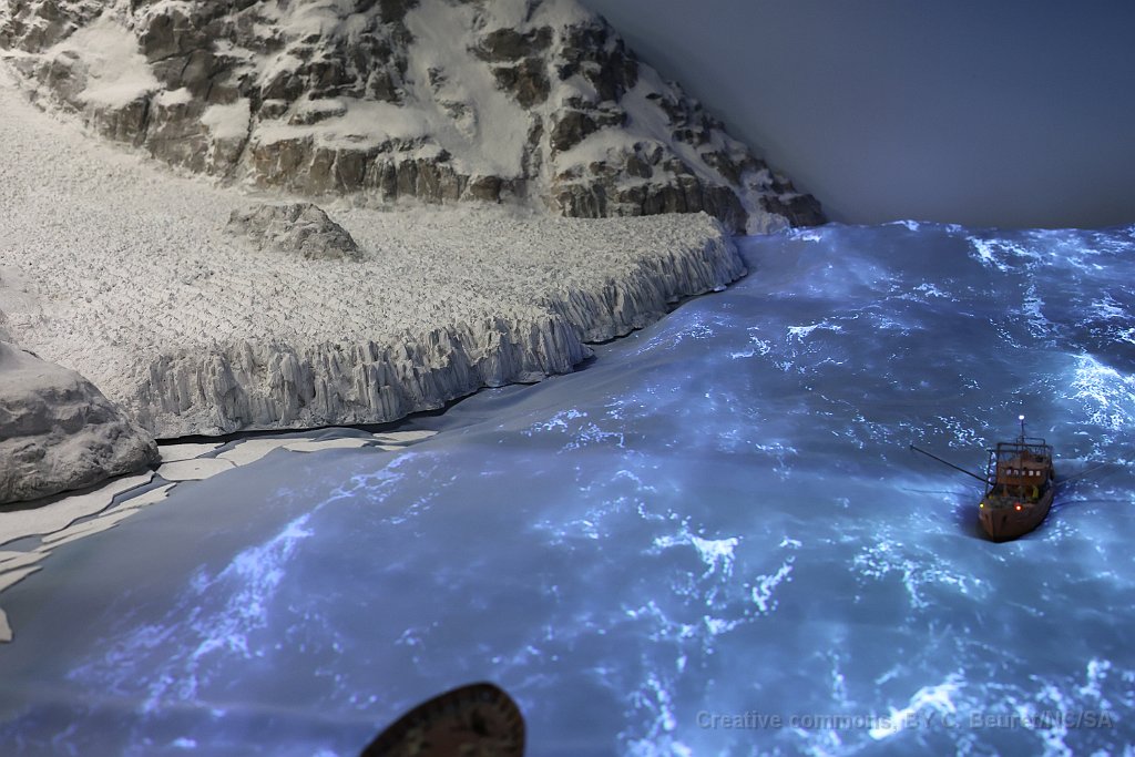 109 Tout au sud, au-delà du Cap Horn, Tempête sur la mer avec animation combinant vague, images projetées et son.