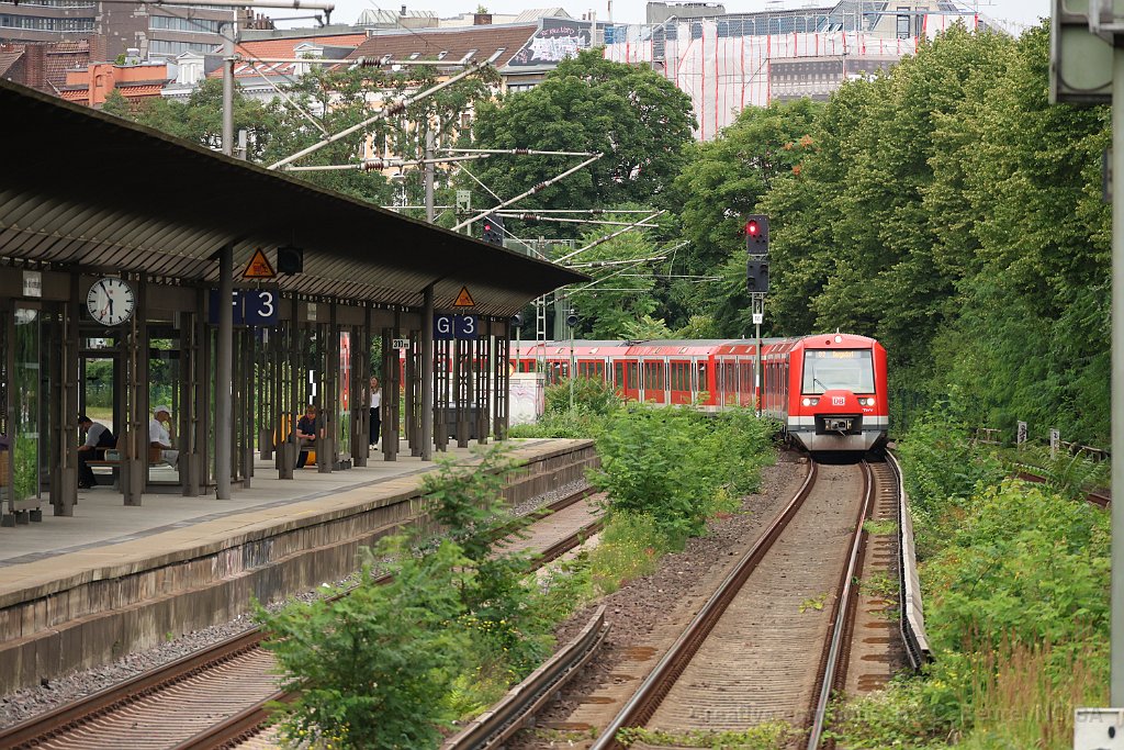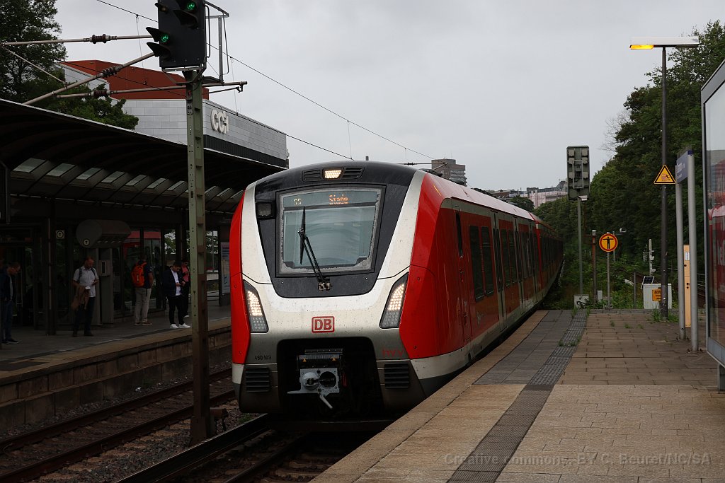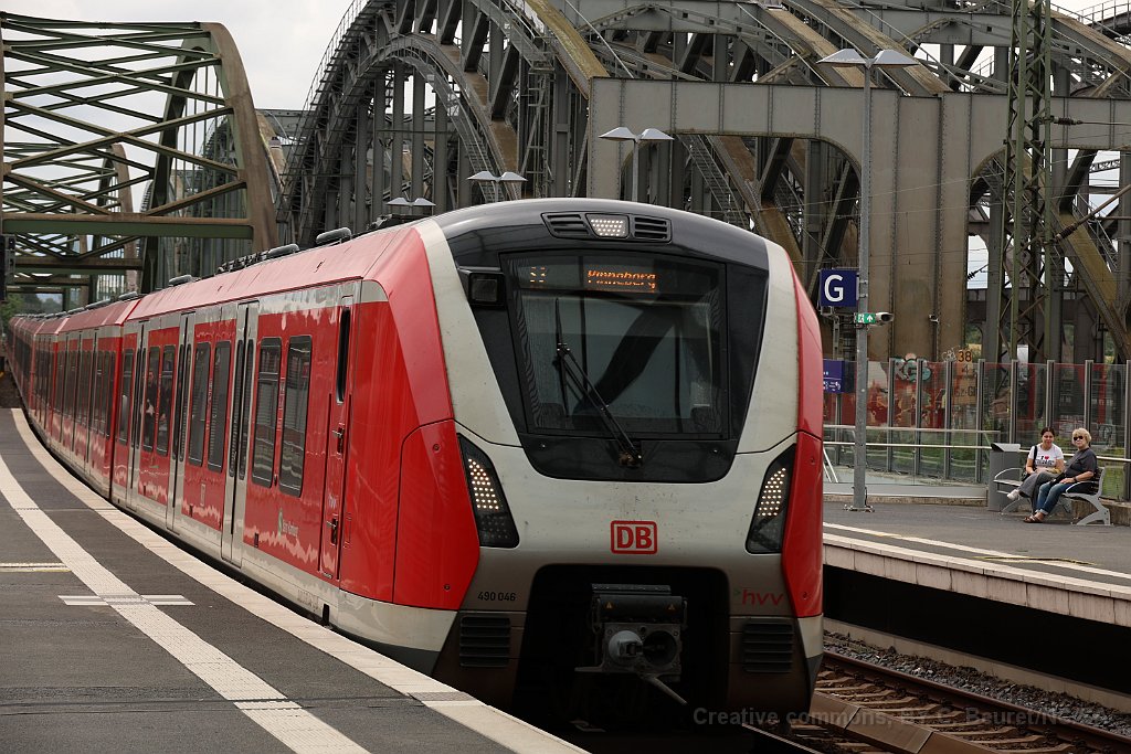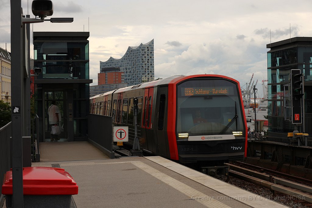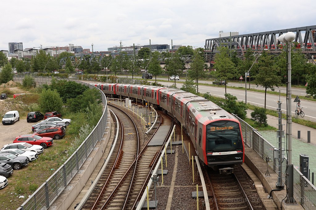 Rame du Métro à la nouvelle station Elbbrücken U4 au départ de Elbbrücken U4 à destination de Burgstrasse (qui n'est en principe pas le terminus de la ligne, mais Billstedt) Rame ET 490 du S-Bahn arrivant sur les ponts sur l'Elbe, photographiée depuis la station Elbbrücken Rame ET 490 datant de 2018 Rame de la ligne U3 arrivant à Landungsbrücken