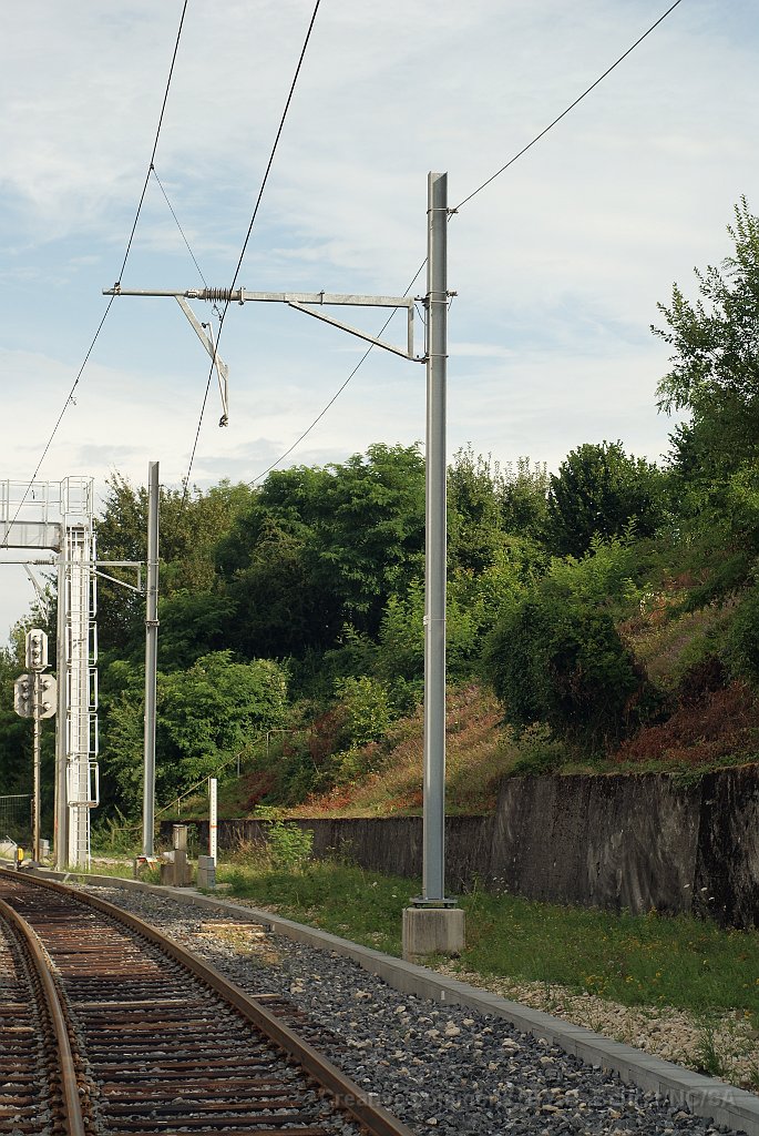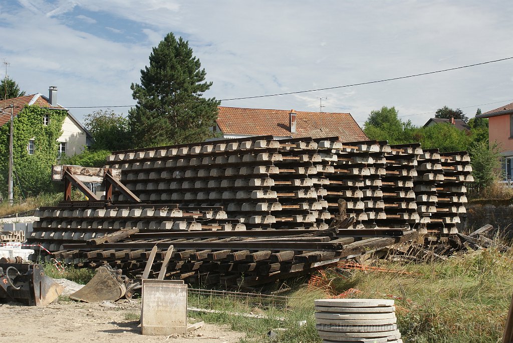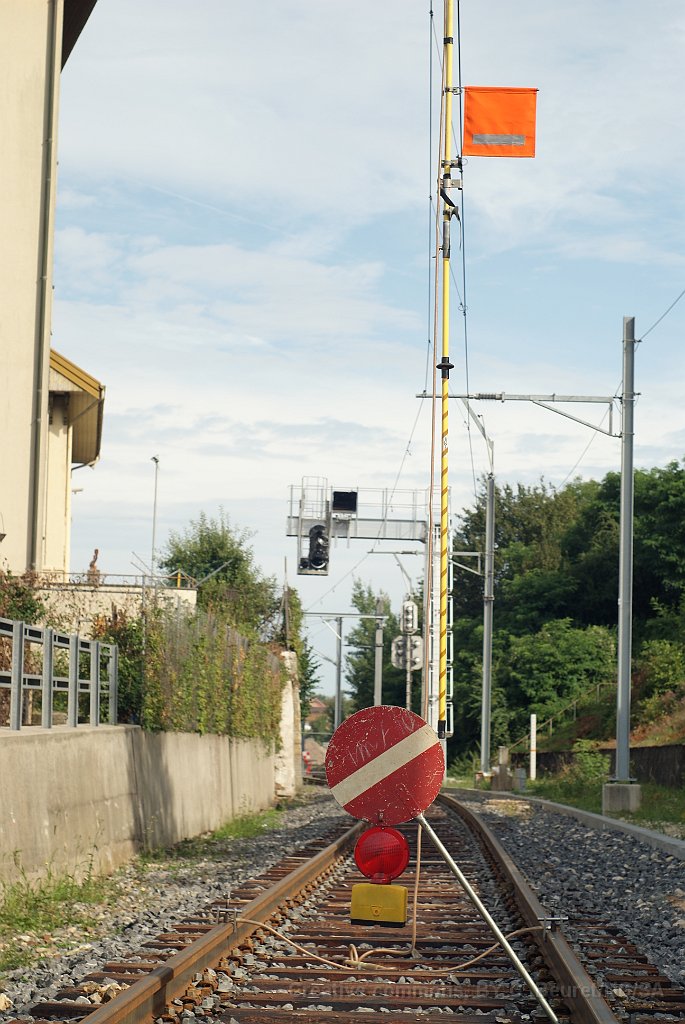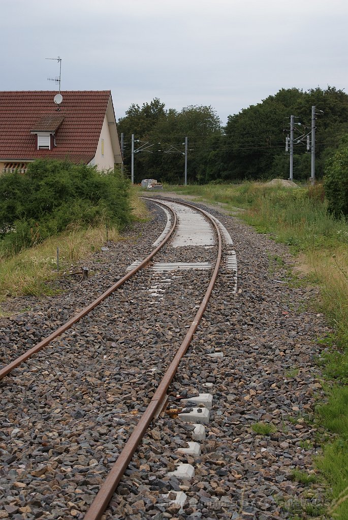 138 Delle avec encore le heurtoir et la ligne 15kV pour les trains suisses. Après la réouverture de la ligne, cette voie sera une voie 25kV.