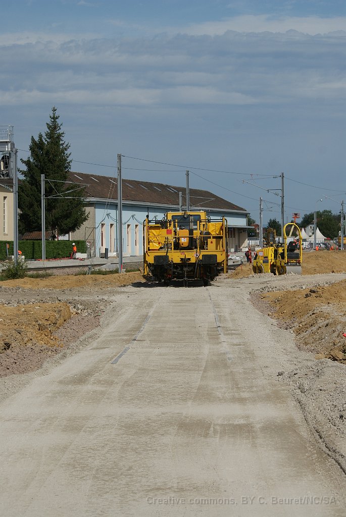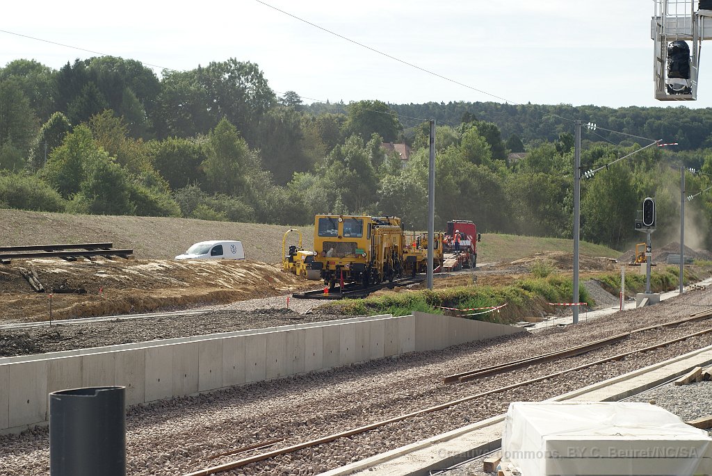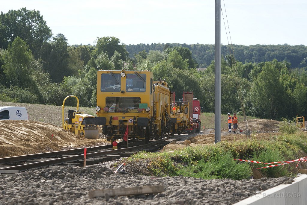 25 Bourreuse sur la voie provisoire (pas encore) raccordée à la voie 3.
