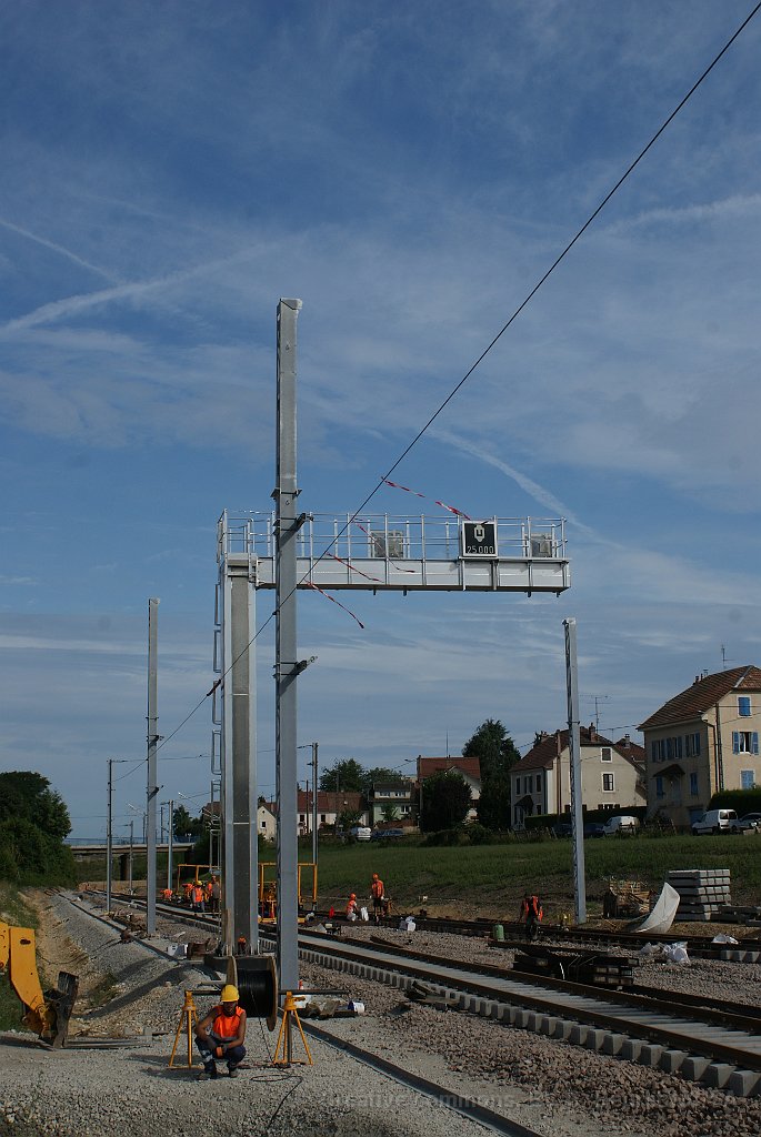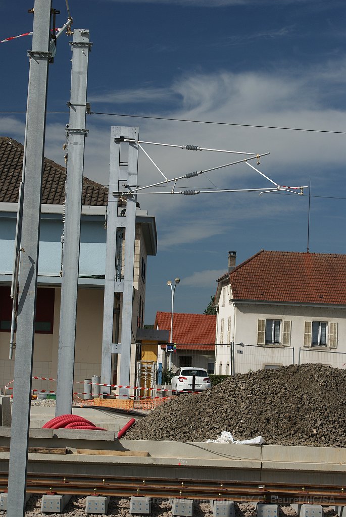 101 Une voie de la gare de Delle sera en 15kV et 25kV depuis la sortie direction Belfort et l'autre sera en 25kV et 15kV dès la sortie direction Suisse.
