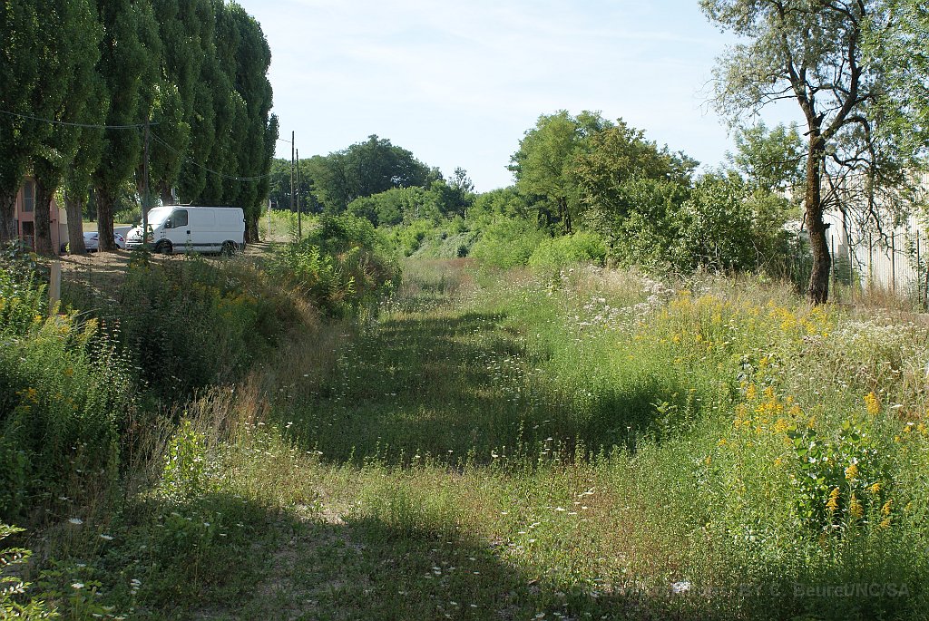 48 Depuis l'emplacement du pont sur la rue de l'Arc, vue en direction de la gare de Grandvillars.