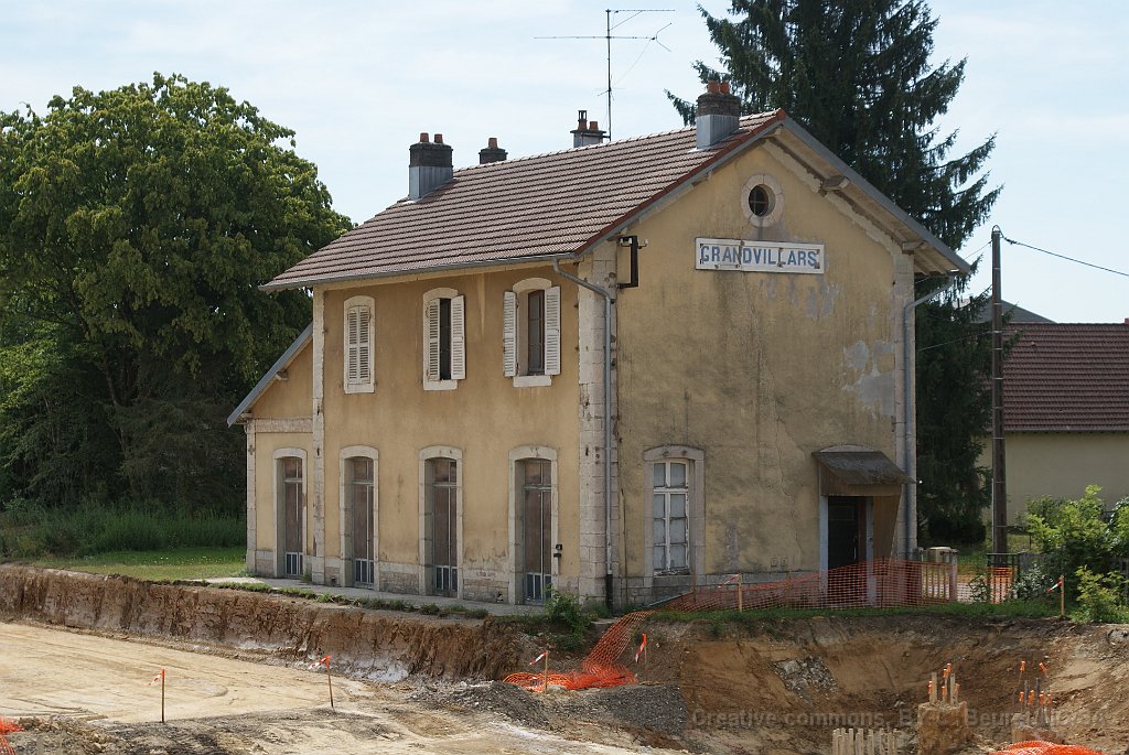 142 Grandvillars. On reconnaît le même bâtiment qu'à Delle, c'est aussi un enclenchement. Grandvillars sera une gare de croisement.