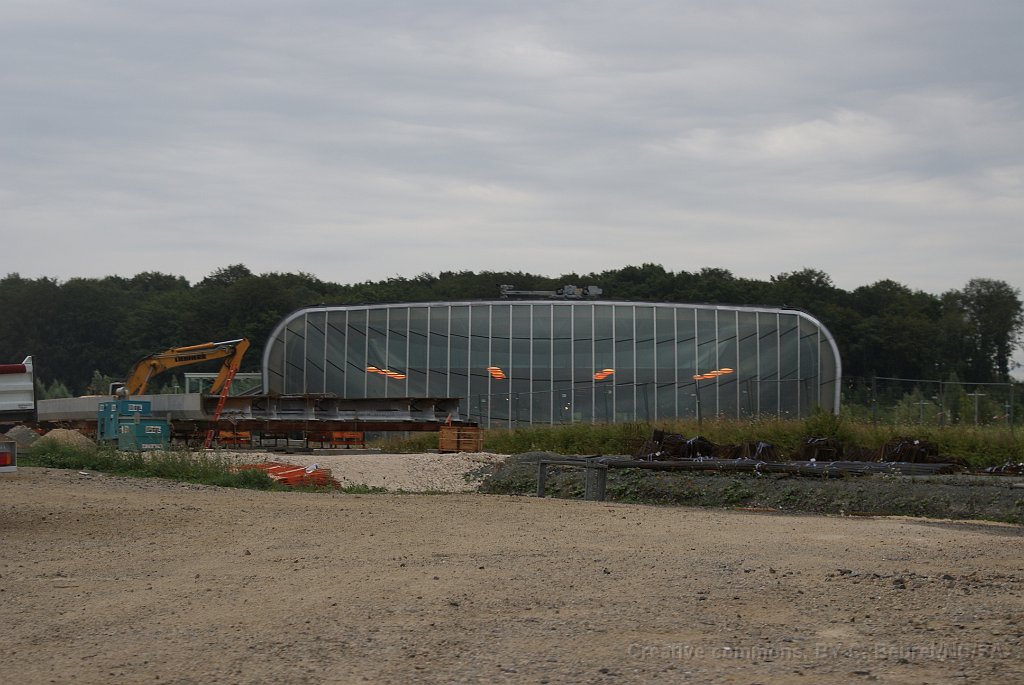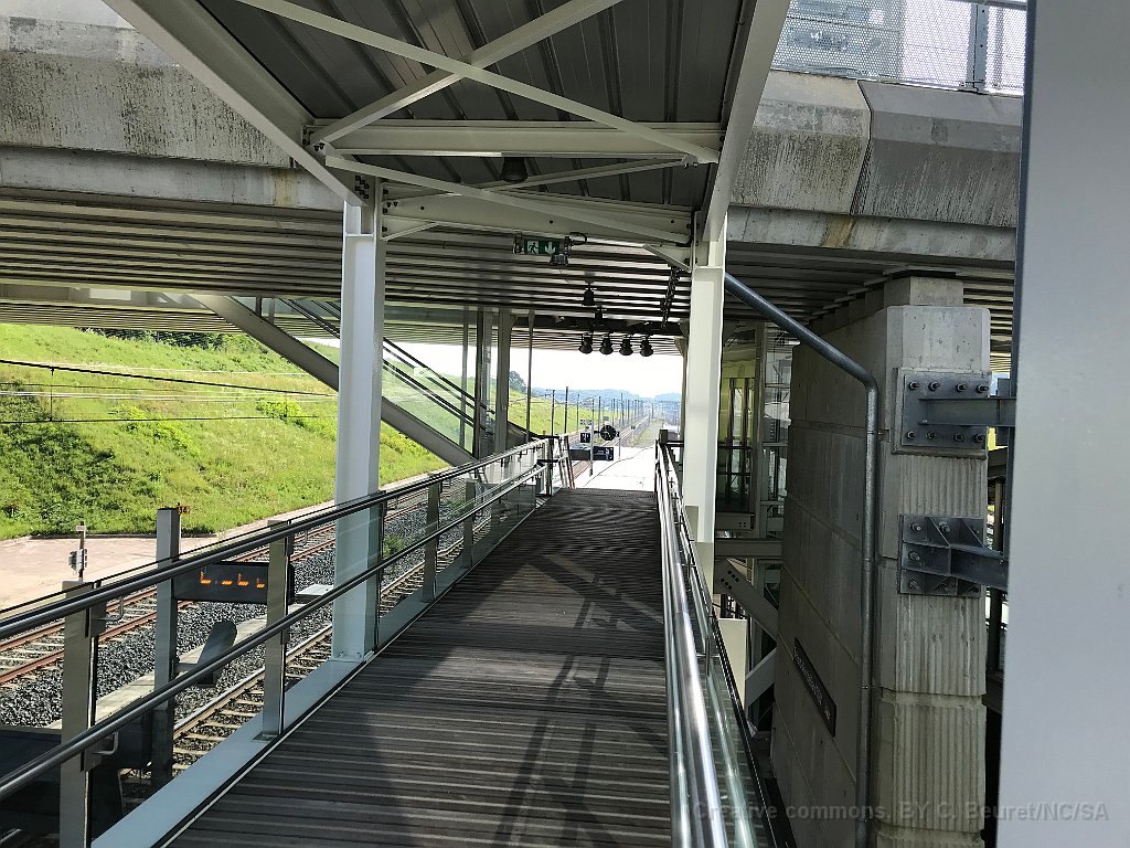 128 Derrière, le bâtiment de la gare TGV et l'ascenseur pour accéder au quai.