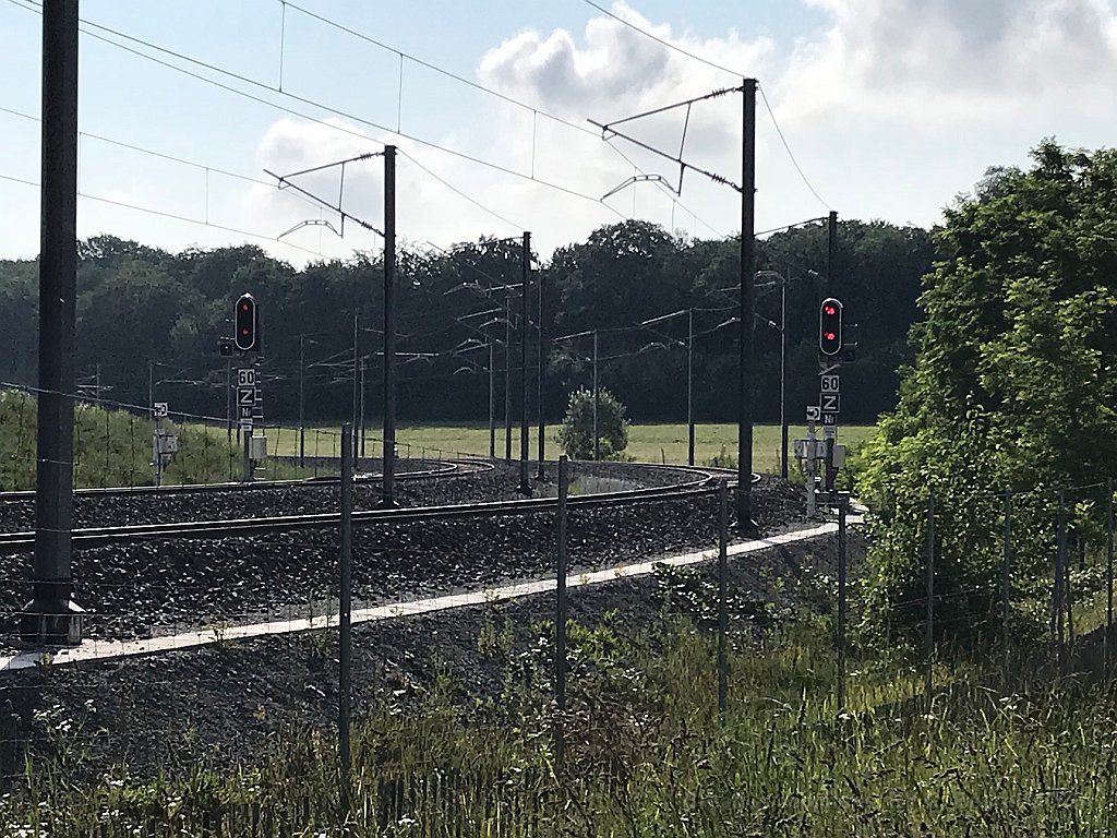 162 14 juin 2018: à 6 mois de l'ouverture commerciale de la ligne, les signaux sont déjà en fonction à la gare de Meroux - Gare TGV