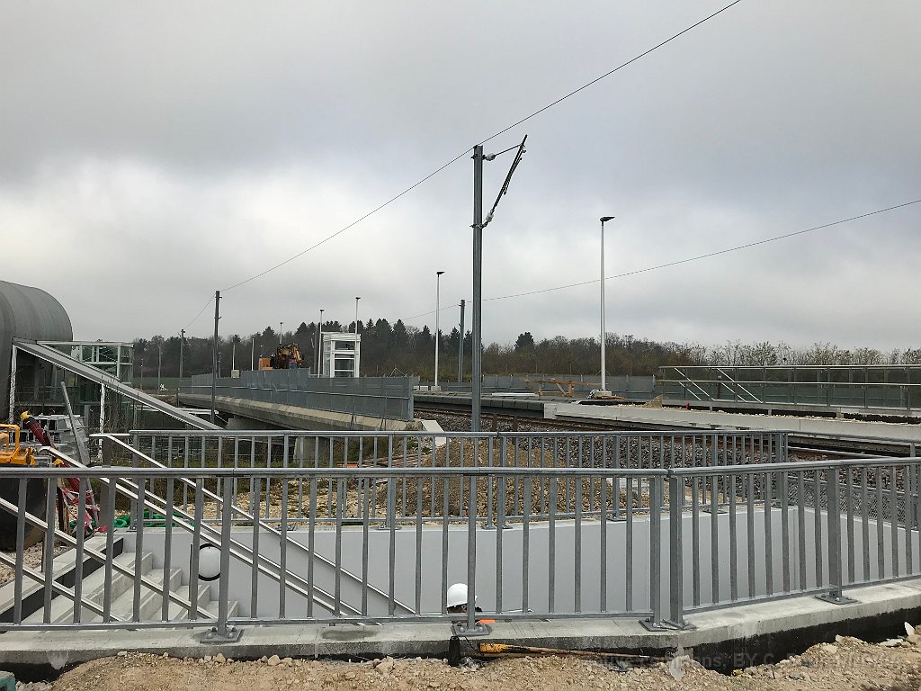 161 Mars 2018: dans 9 mois, les trains circuleront ici. On voit l'arrivée de l'ascenseur qui relie directement les quais TGV et l'abri de quai.
