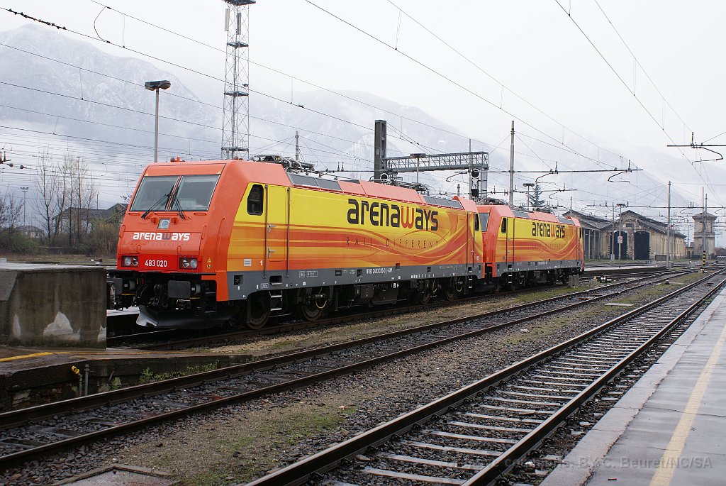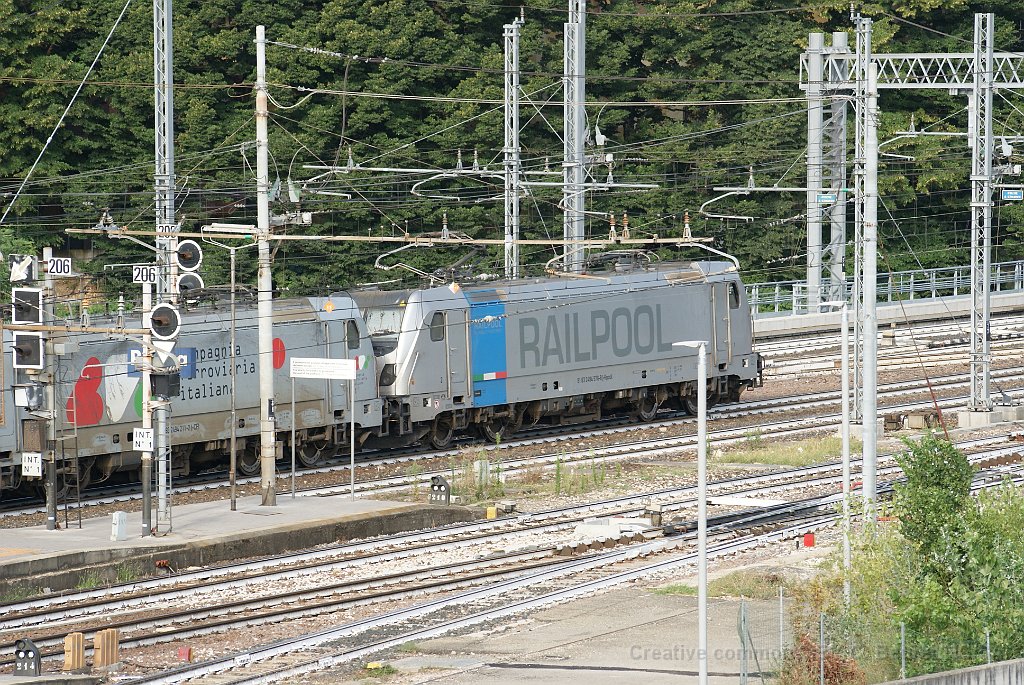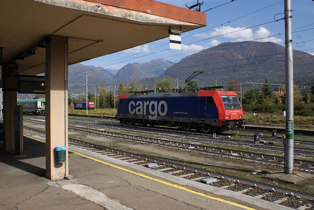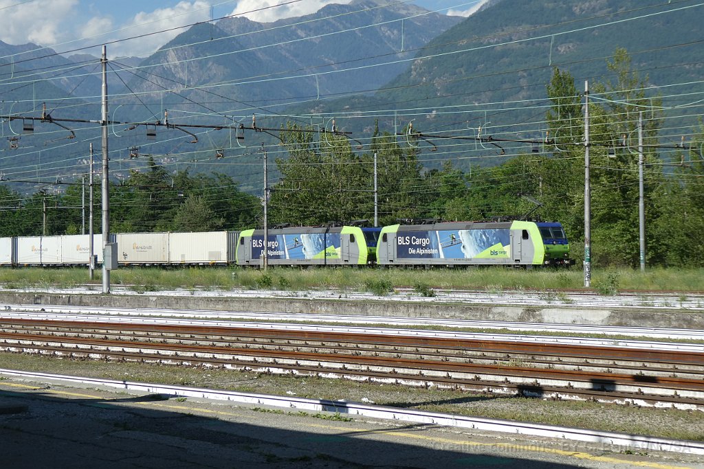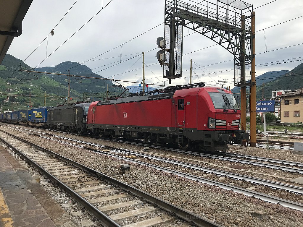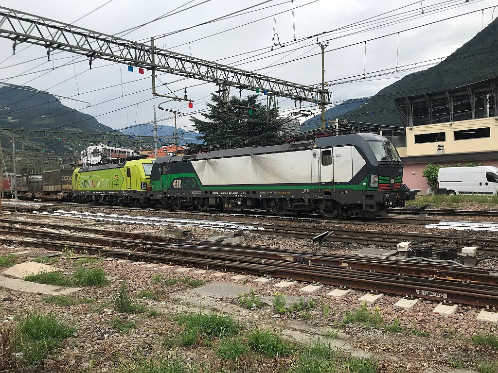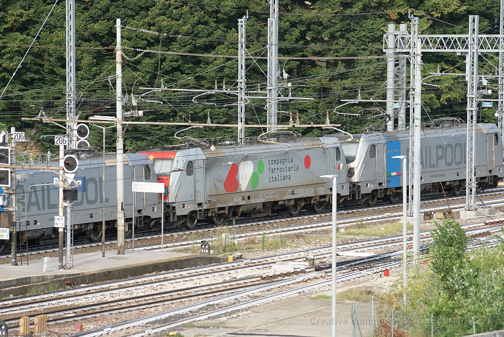 DSC04392 Double traction de Vectron (DB et MRCE) avec un train de container LKW Walter au départ de Bolzano Départ d'une autre doublette de Vectron: une de European Locomotive Leasing et l'autre de TXLogistics Deux Re 484 CFF Cargo à Domodossola Deux Re 485 du BLS sur la voie de contournement de la gare de Domodossola à destination de la gare marchandises Domodossola II En Italie, la TRAXXX 3 porte la dénomination E494.