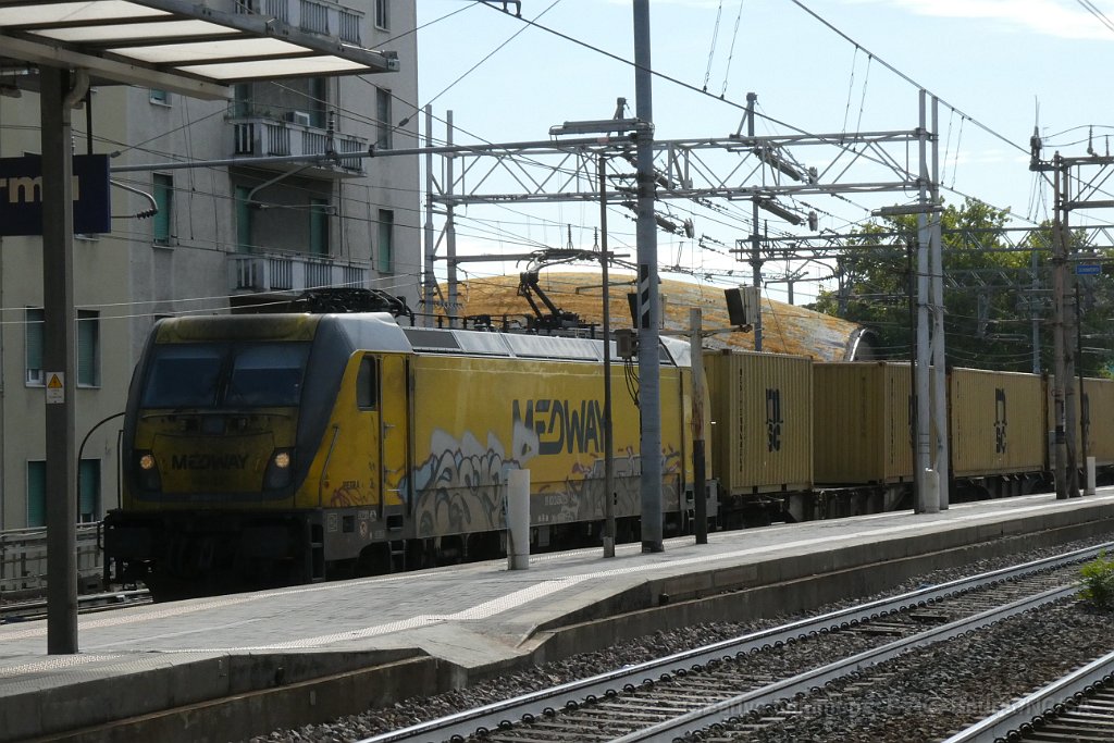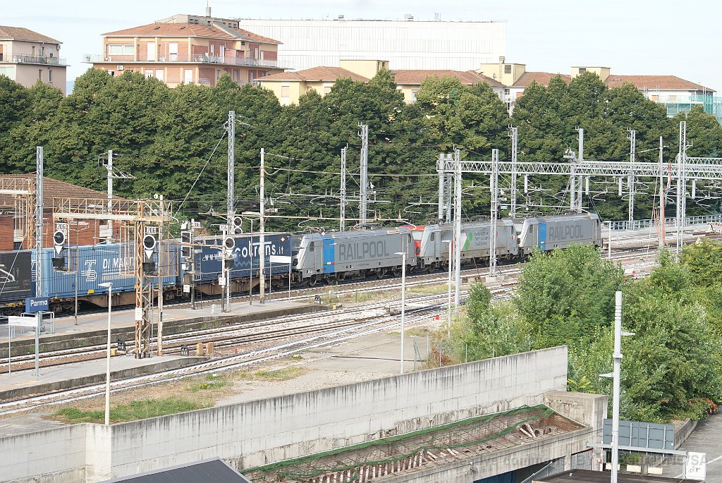 Entre 2 Railpool, une E494 CFI à Parma Un lourd train de marchandises passe la gare de Parme Les combinaisons des compagnies et livrées sont assez variées en Italie Mais FS a aussi sa compagnie de fret. E652 à Parma Une E494 bien sale et tagguée passe à Parma