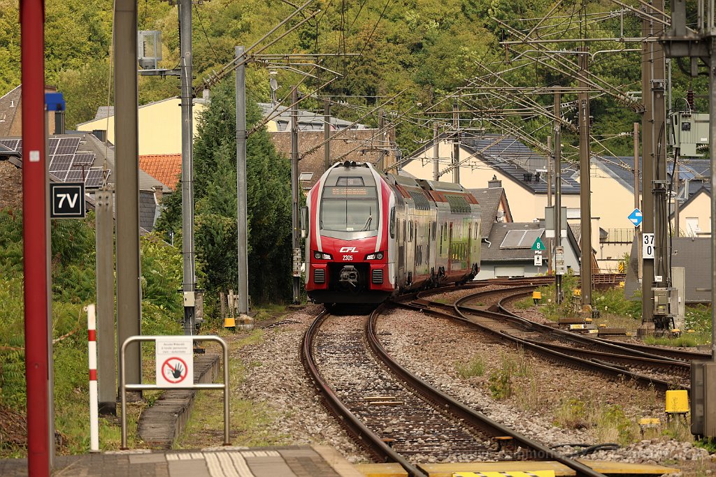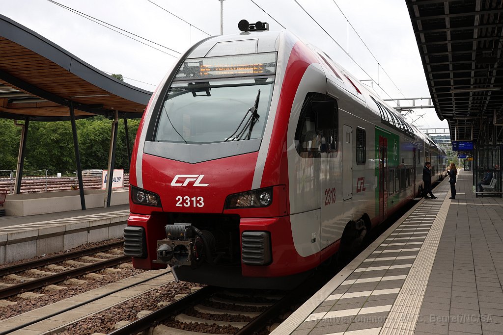10 Le KISS 2313 attend à Ettelbruck le voyageur en provenance de Luxembourg par le bus de remplacement (importants travaux en été 2025) avant de rouler comme RE direction Troisvierges
