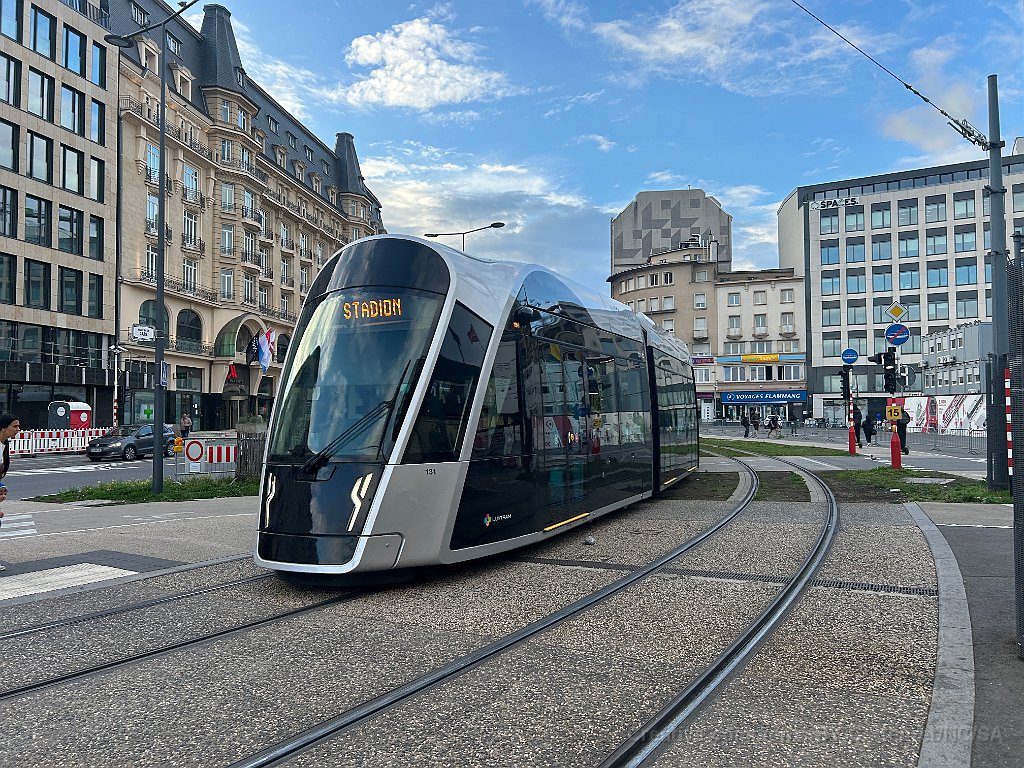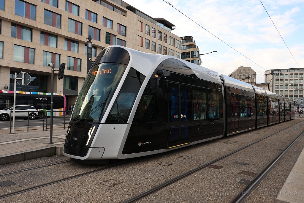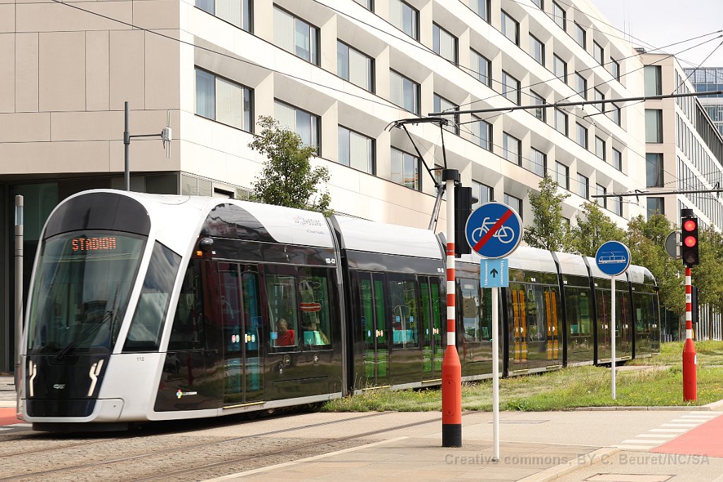 1 Tram de Luxembourg près de la station de Pfaffenthal-Kirchberg. On note qu'il n'a pas de caténaire