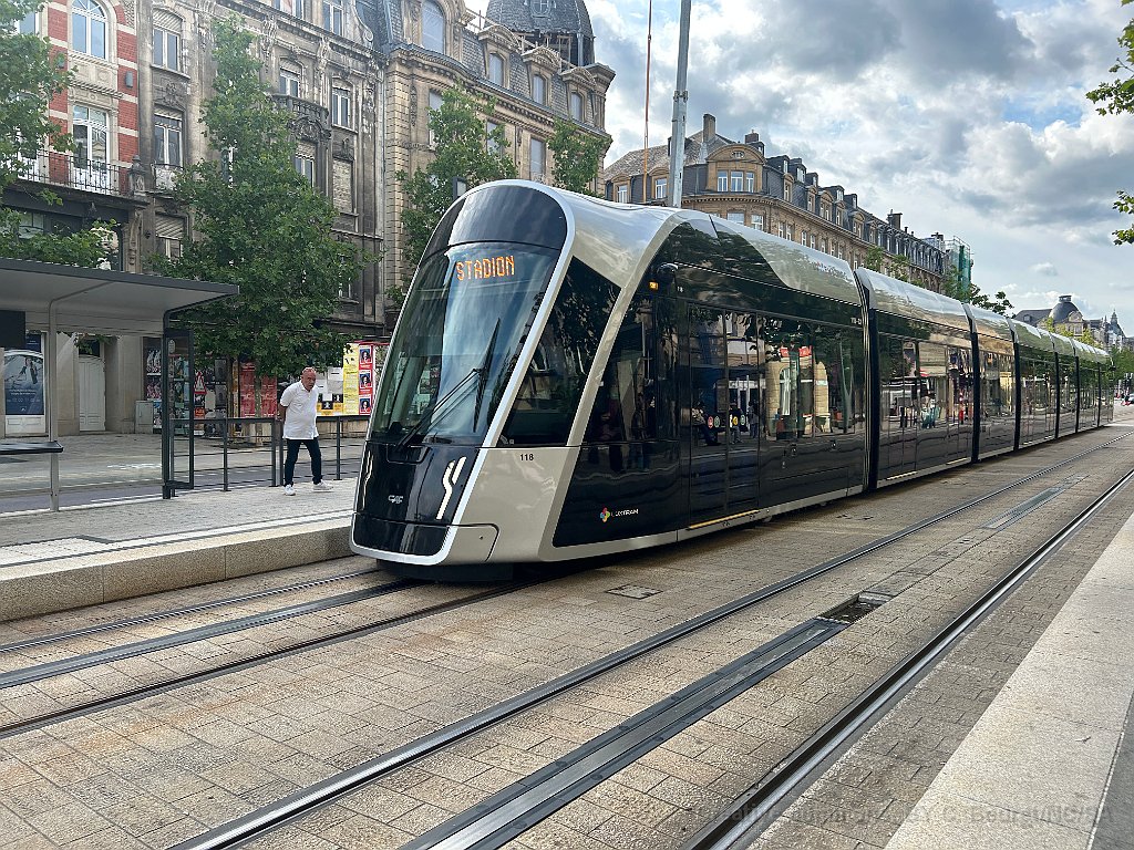 4 Ici en revanche à la gare, il a une caténaire. Le système est fait pour que l tram puisse se recharger dans les sections sous caténaire ou dans certaines station et roule sous accumulateur là où la caténaire n'a pas été construite pour des questions d'esthétique ou de coûts