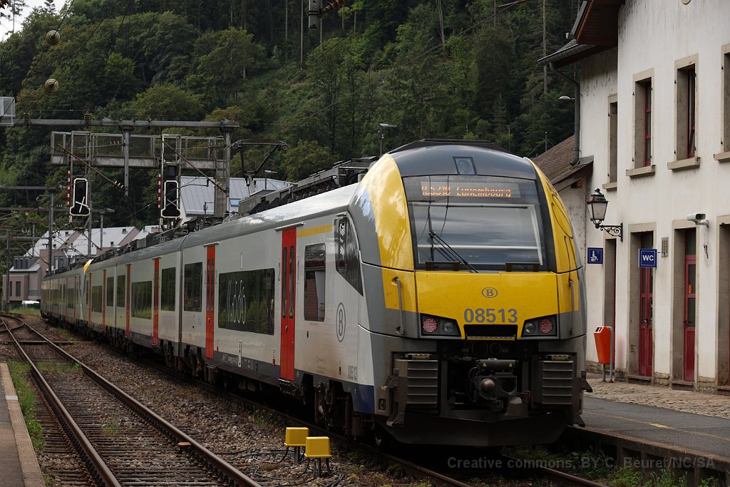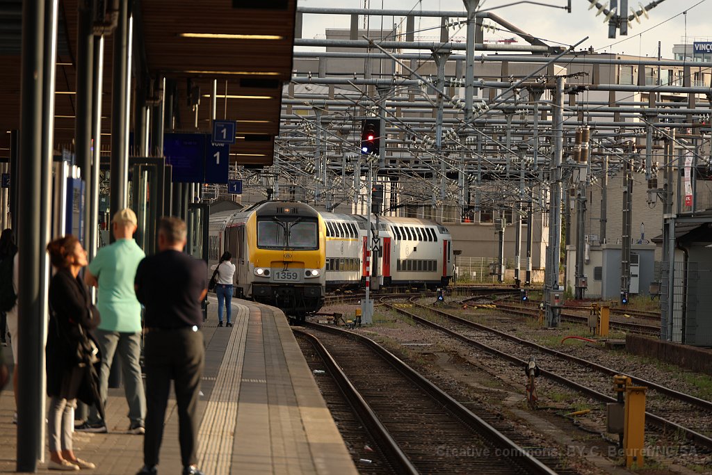 Arrivée à Luxembourg de l'IC en provenance de Bruxelles - Namur - Arlon Loc série 1300 des SNCB arrivant à Luxembourg IC Liège - Luxembourg à Clervaux. Entre Troisvierges et Luxemburg il assure la cadence demi-heure par rapport eu RE IC Liège - Luxembourg arrivant à Vlervaux