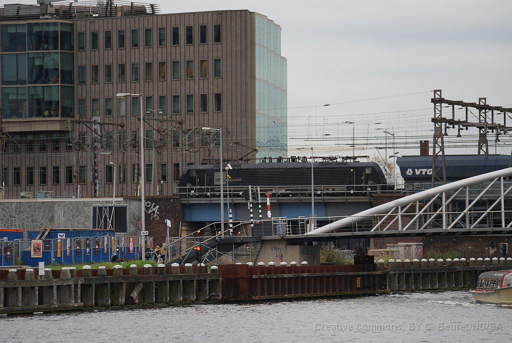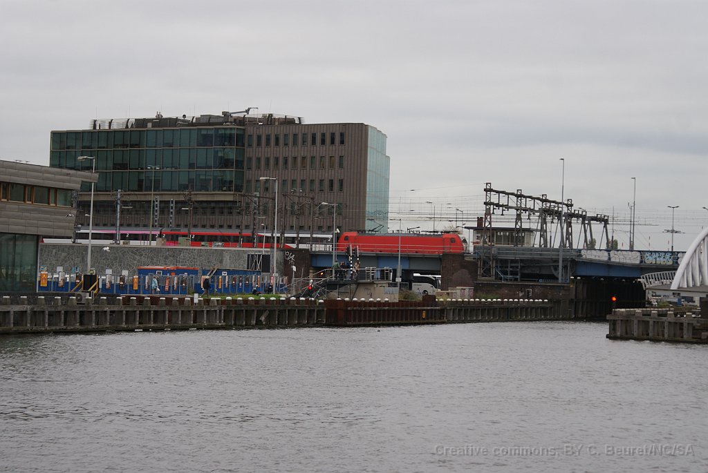 Devant l'Amsterdam Arena (stade du Ajax Amsterdam) passent deux 189 de la DB en UM Une ES64-F4 de MRCE passe l'Amstel et arrive à Amsterdam Centraal Une 189 allemande avec une rame ICR aux couleurs Fyra