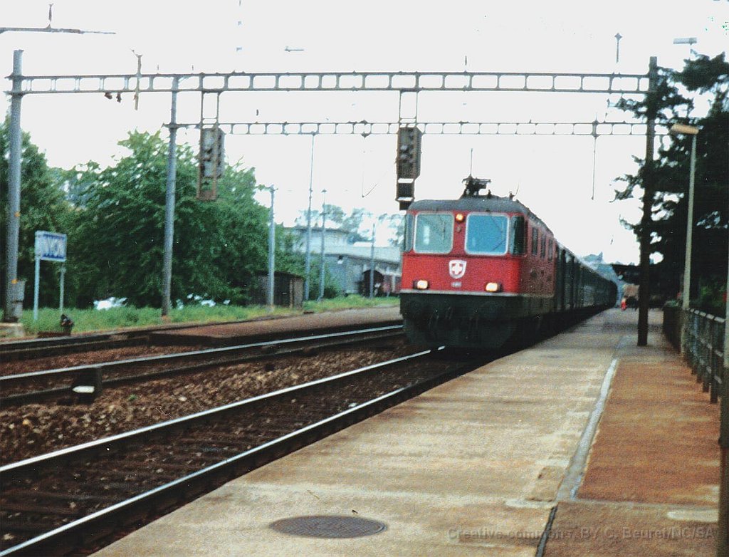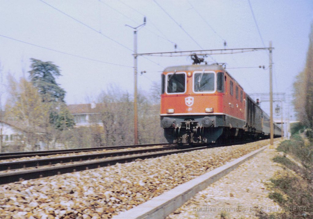 1 Une des premières Re 4/4 II rouge avec phares rectangulaires à Nyon