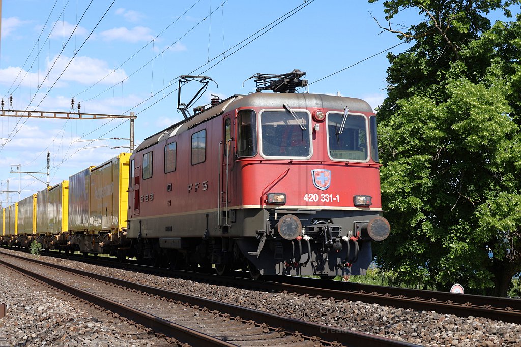 83 Cargo promène ses locs... Re 420 267 sur la ligne Brugg - Othmarsingen sur l'aiguillage du raccordement de Mägenwil en construction
