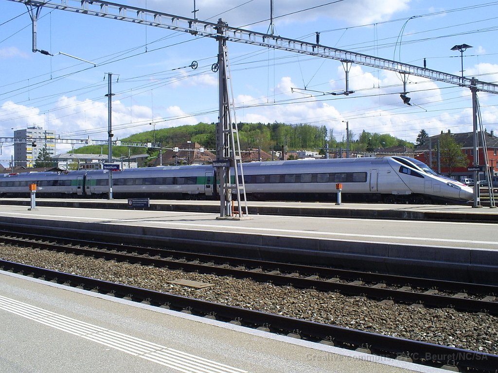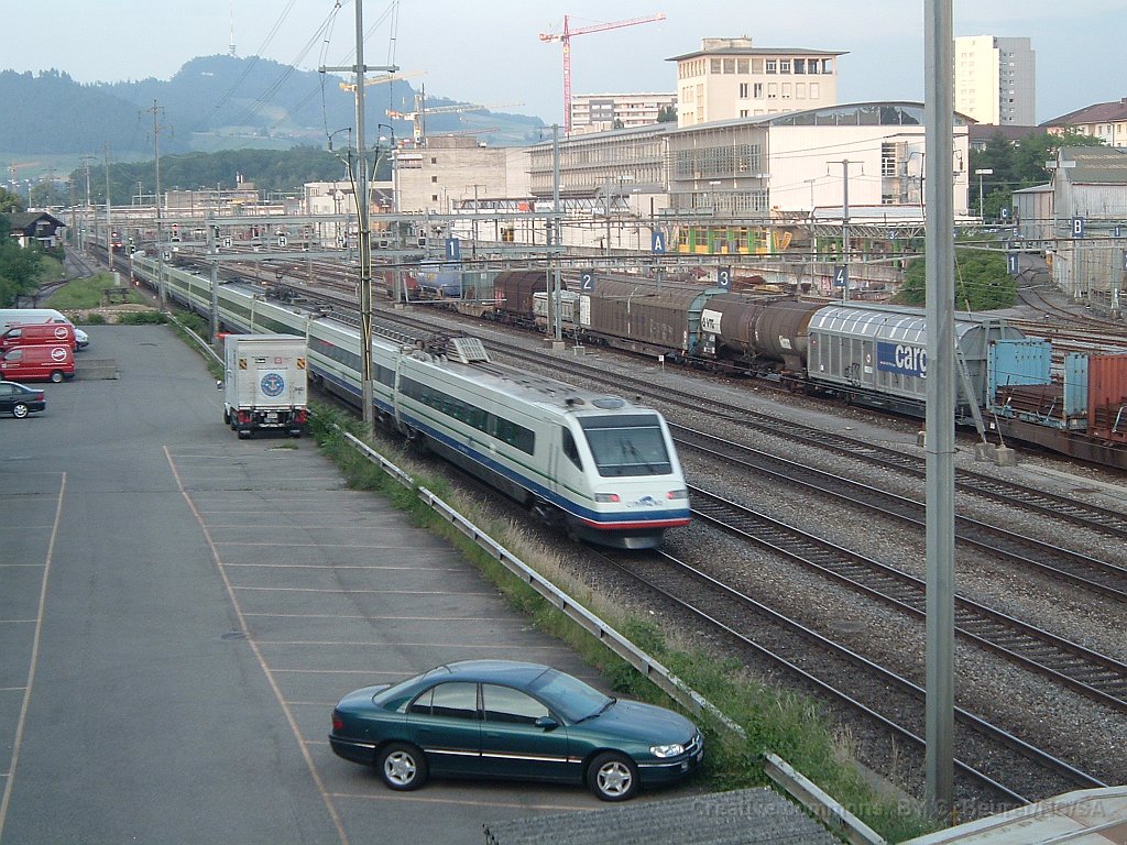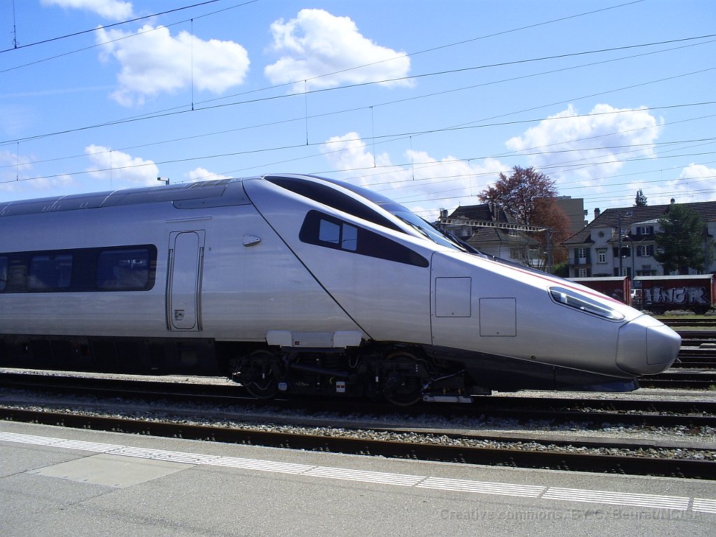 ETR 610 à Ostermundigen, encore sans marquages ETR 610 à Ostermundigen ETR 610 (new Pendolino) en test à Ostermundigen ETR 470 Cisalpino près de la bifurcation de Löchligut ETR 610 001 à Bern pendant la (très longue) phase de tests. ETR 610 au dépôt BLS de Holligen. La Re 4/4 II à droite a au crochet une voiture de mesure allemande.