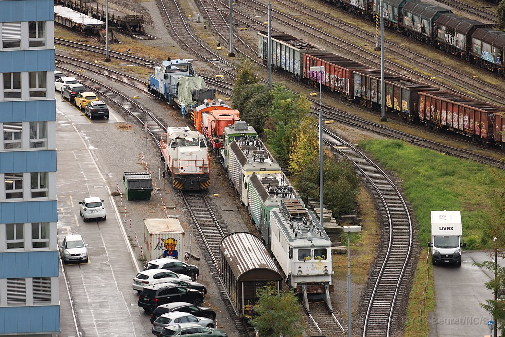 77 Un ex-DR, deux ex Re 4/4 IV, un ancien tracteur BLS, un Köf II... étrange collection au port Rhénan de Bâle