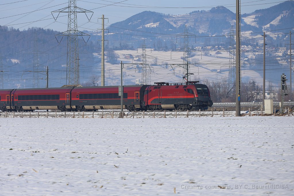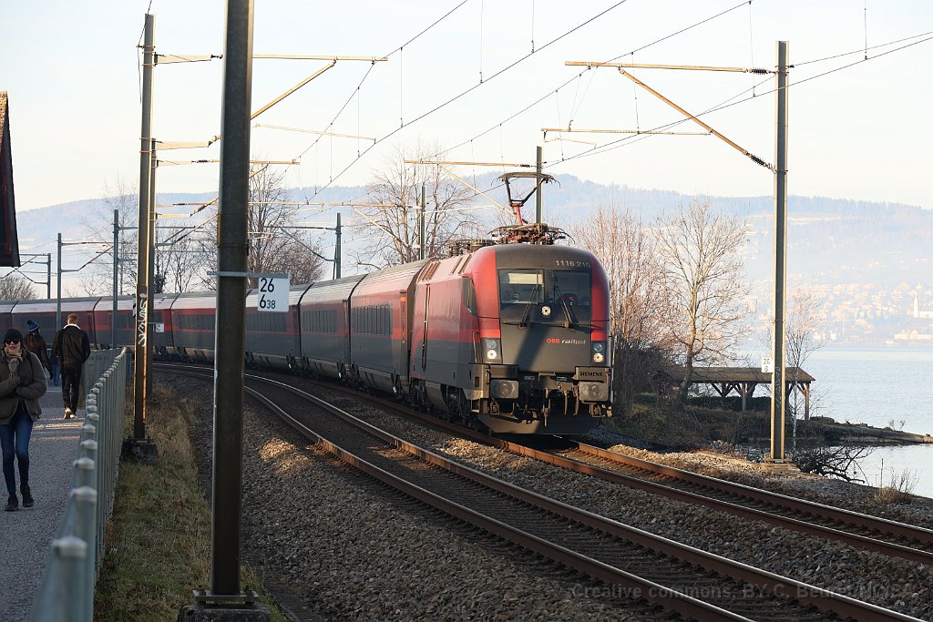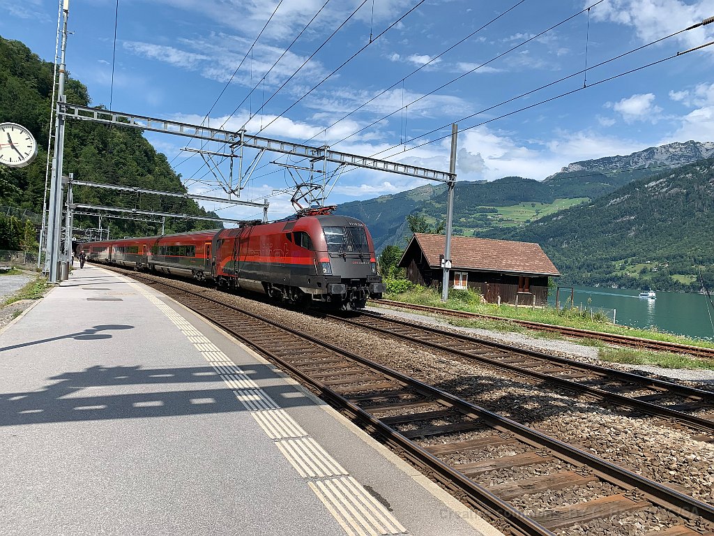 Voiture Nightjet à Basel SBB. Depuis décembre 2016, ce sont les ÖBB qui ont repris le trafic de nuit de et vers diverses destinations allemandes. Taurus ÖBB Railjet à Zürich en tête du Raijet pour Budapest. Un Railjet de passage à Mühlehorn le long du Walensee Près de Zieglebrücke Taurus Railjet près de Ziegelbrücke Rame Railjet entre Bilten et Ziegelbrücke