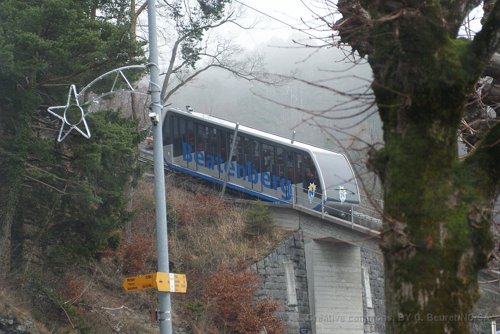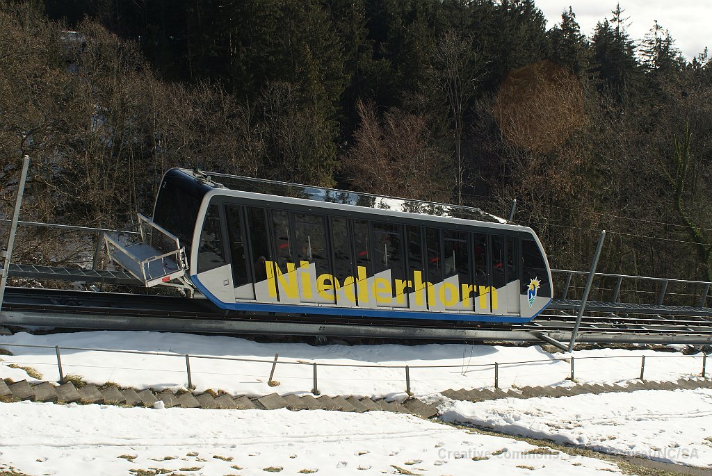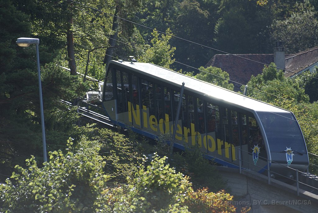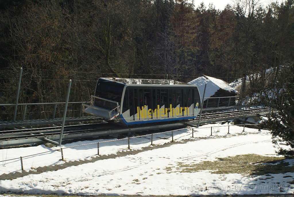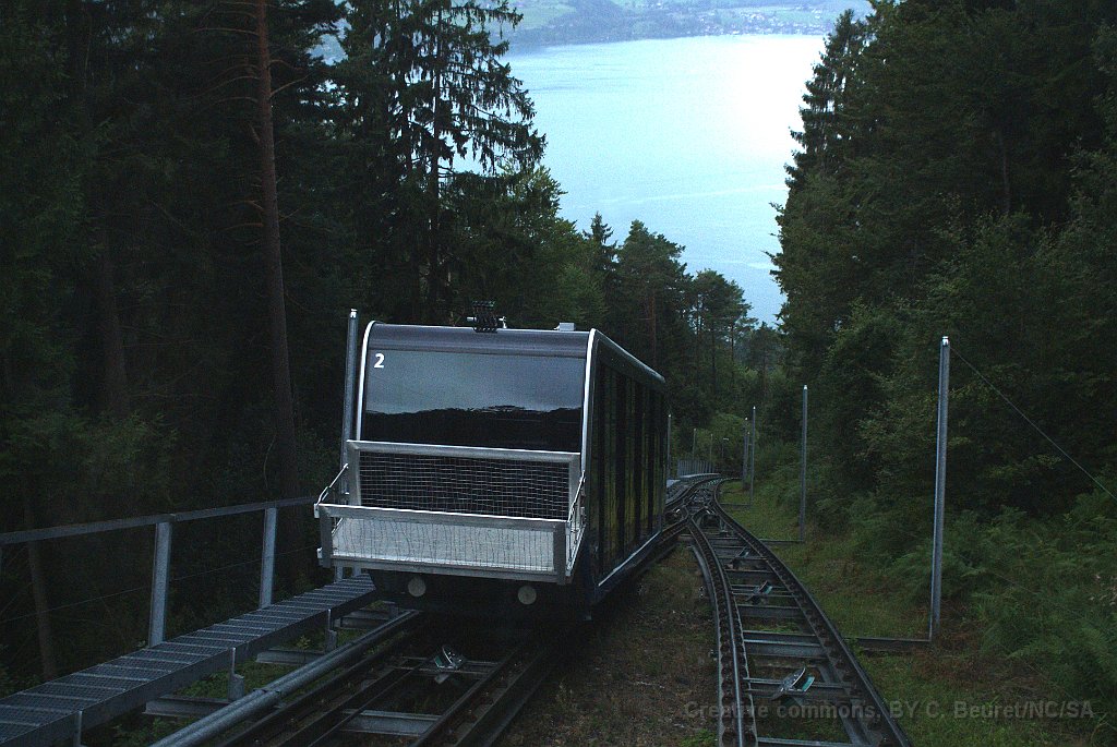 Cabine 2 près de la station supérieure Bientôt arrivée au bout de la ligne Cabine 1 près de la station inférieure Au début de l'automne, l'autre cabine juste après le départ de la station inférieure Le funiculaire et la station inférieure, vus depuis le lac de Thoune. A l'évitement