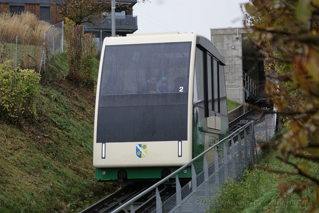 La cabine 2 vient de quitter la station supérieure Le trajet dure 3 minutes. En semaine la cadence est de 5 minutes, 10 le week-end et en soirée. ... et en amont celui de Cossonay Après le croisement, la cabine 2 dans la partie supérieure du trajet La cabine 1 dans la descente. Les deux cabines portent en aval le blason de Penthalaz... On devine la station supérieure