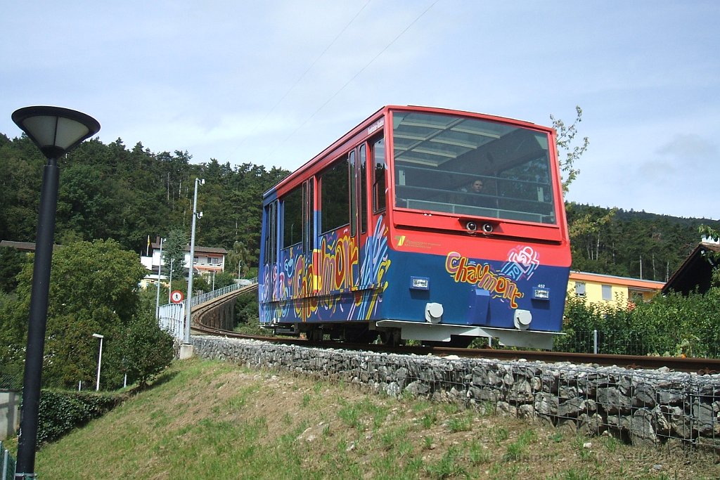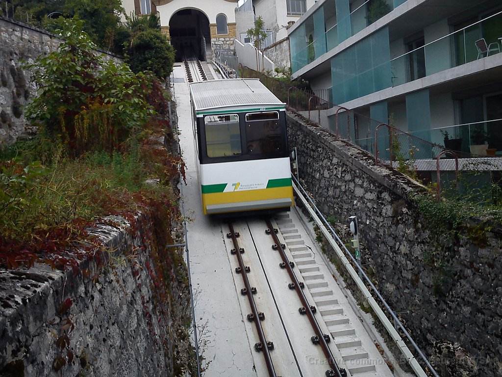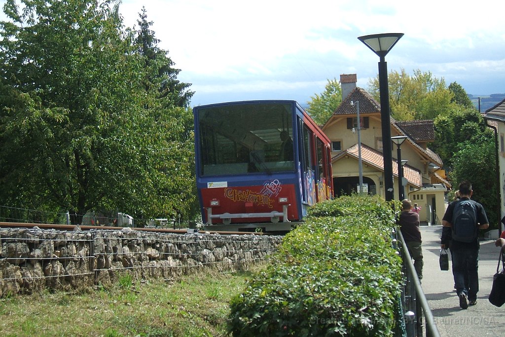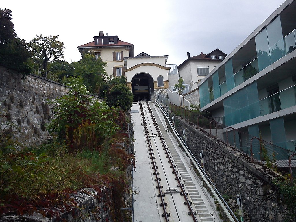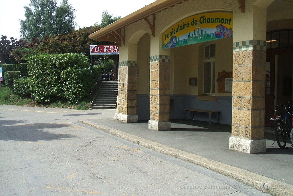 Funiculaire de Chaumont peu avant la station inférieure La Coudre Devant la gare du funiculaire on devine encore dans le bitume les traces des anciens rails du tram