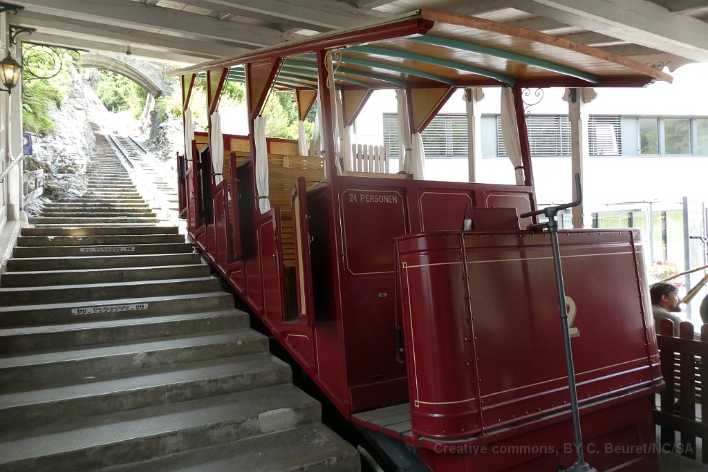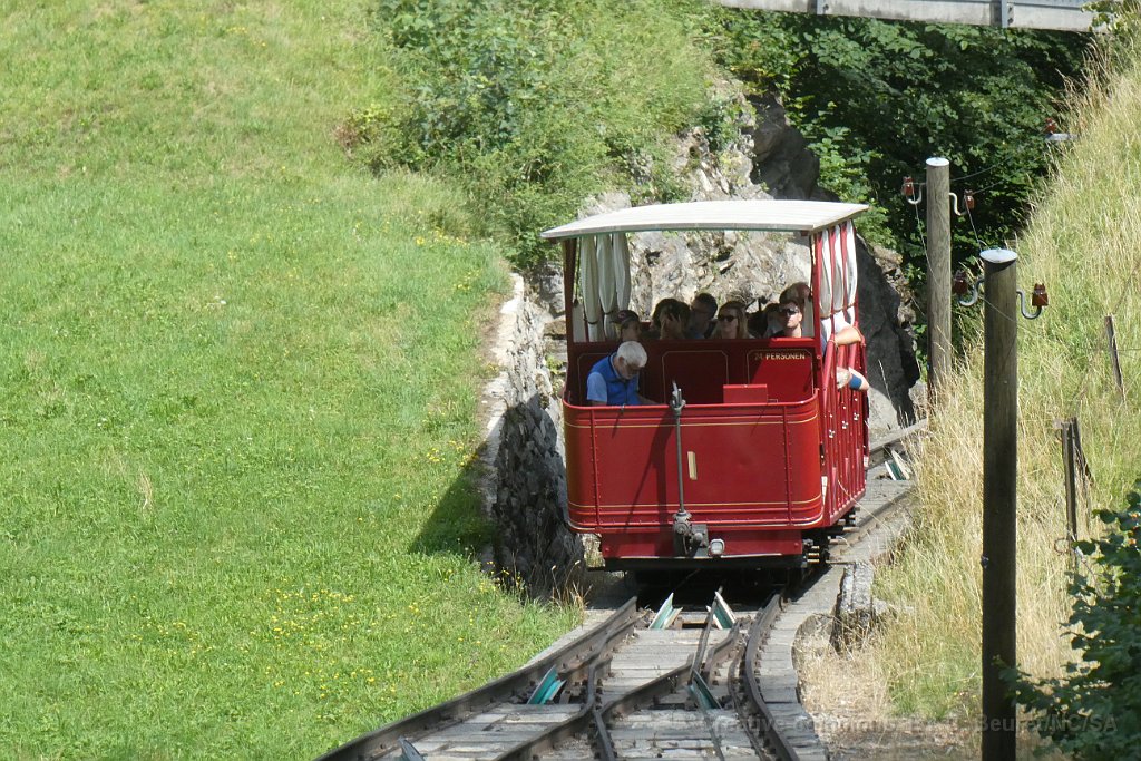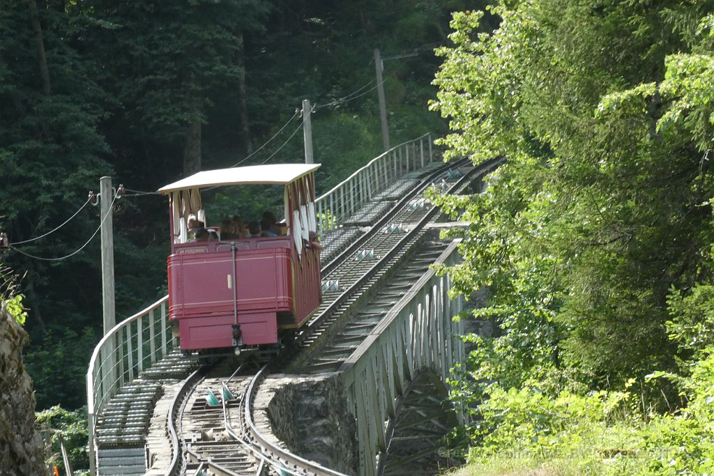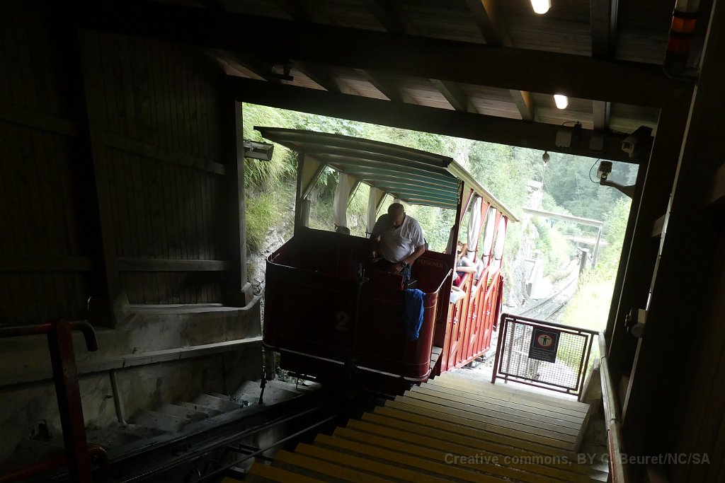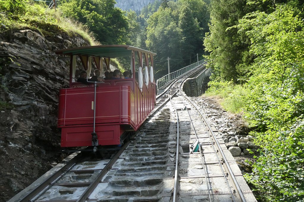 La cabine 1 s'engage sur le pont sur le Reichenbach La cabine 2 à la station inférieure