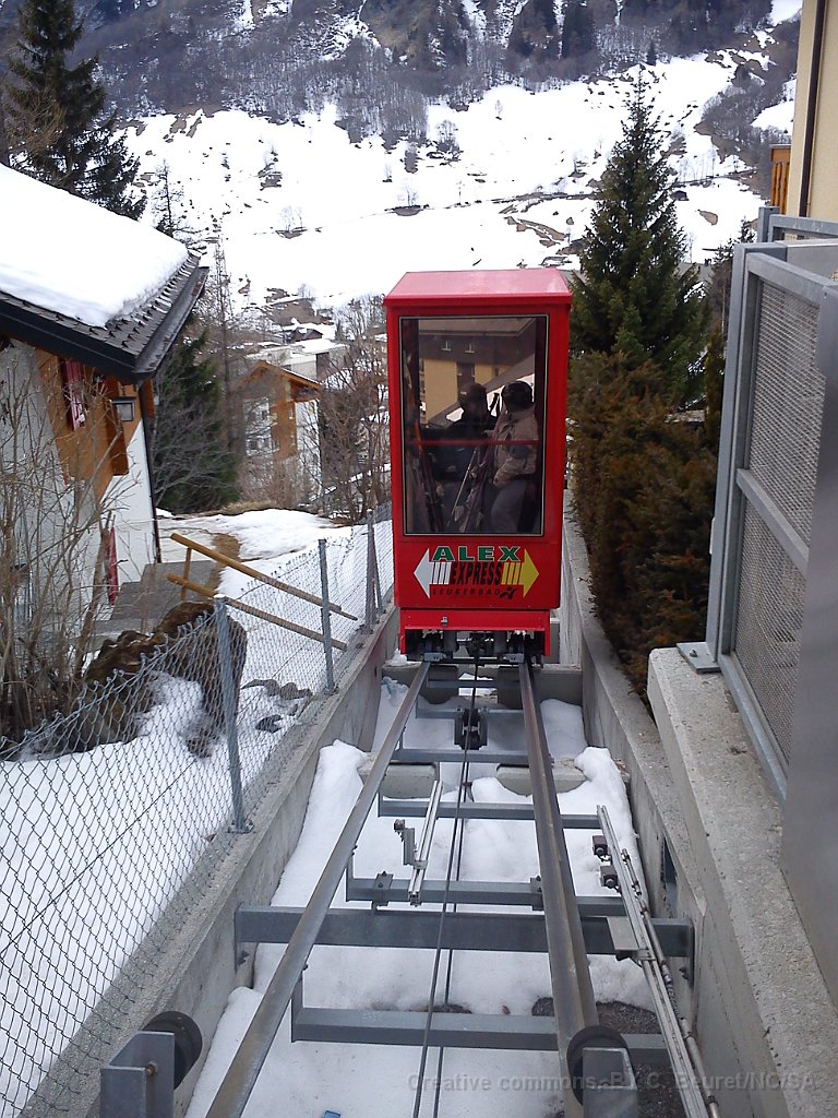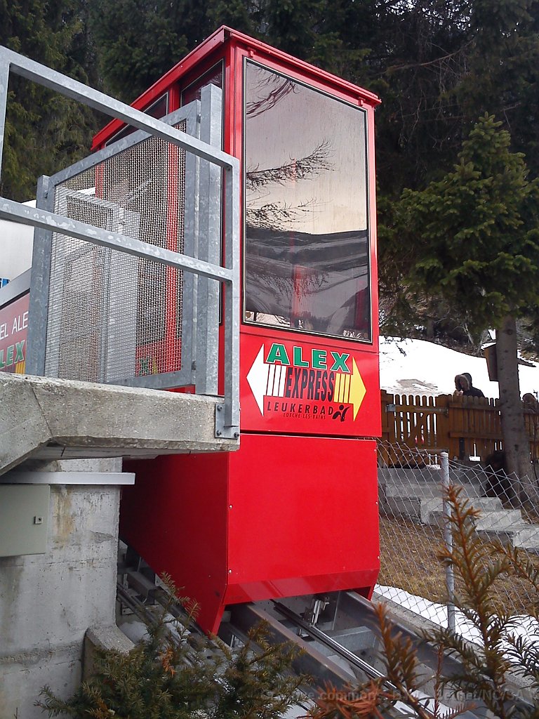 Alex-Express à Loèche-les-Bains Vu de la station supérieure L'Alex-Express permet au client de l'Hôtel Alex de monter sans effort à la station inférieure du téléphérique de Torent. L'Alex-Express dans sa station inférieure Le tracé de l'Alex-Express