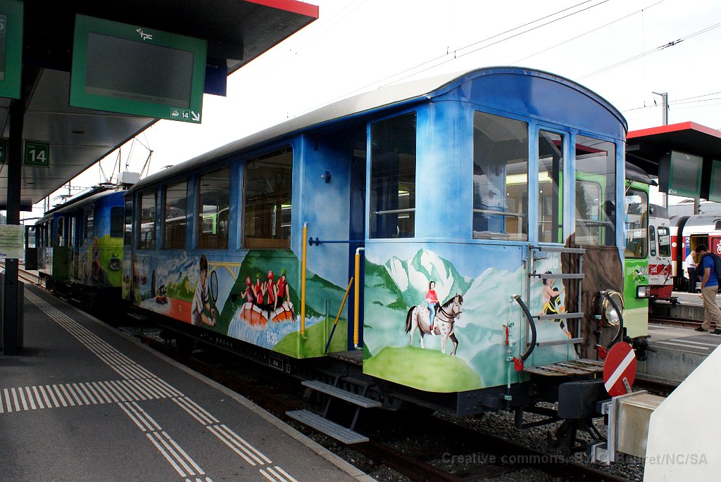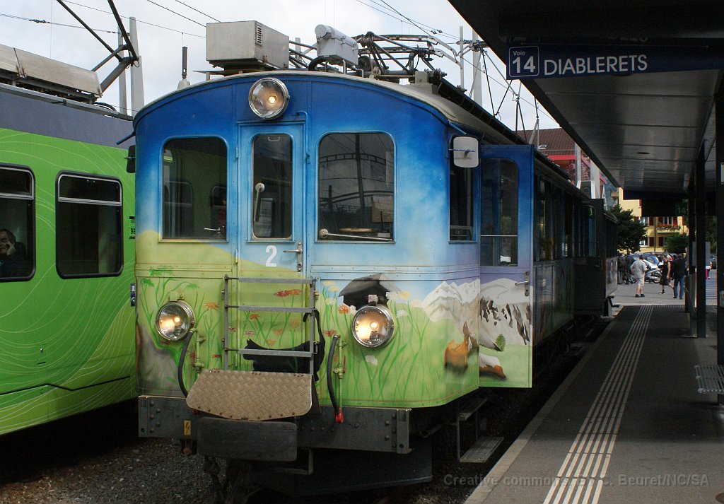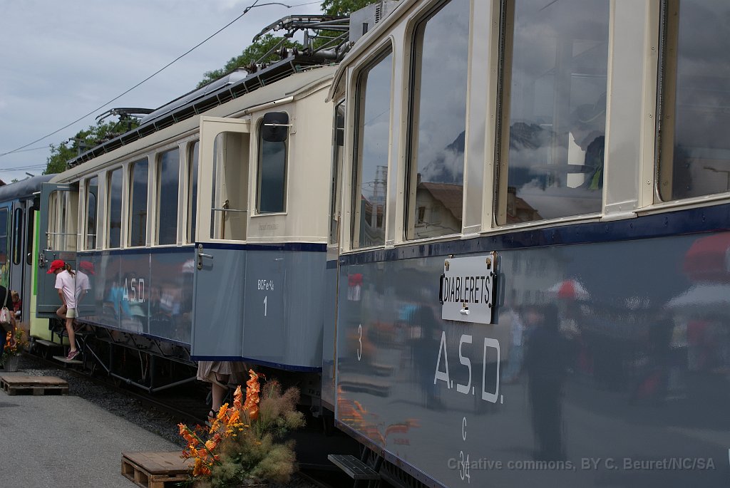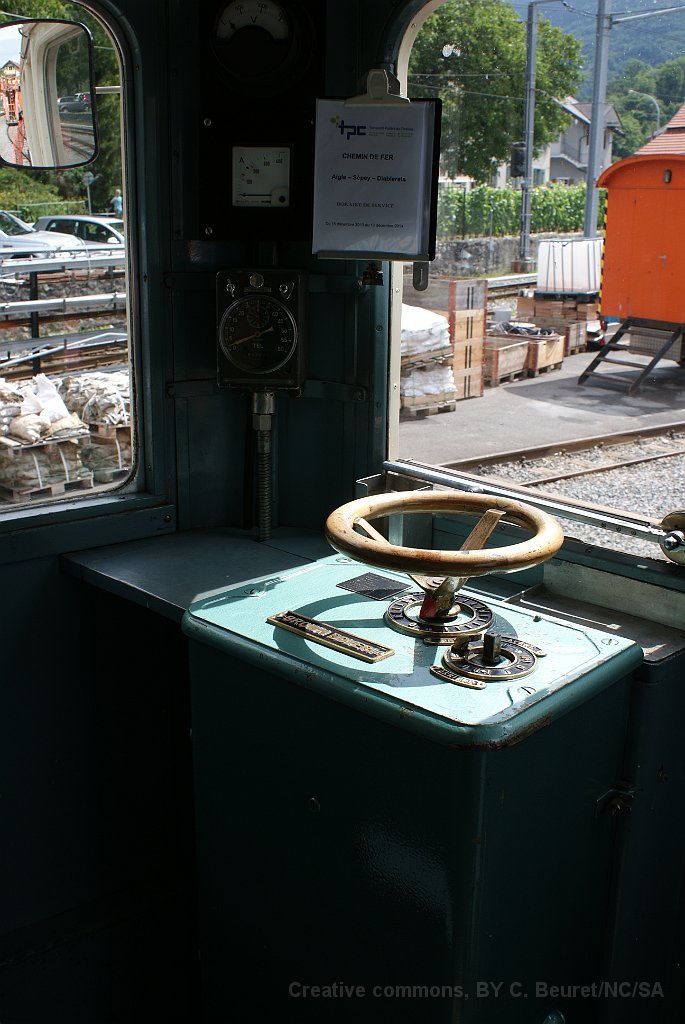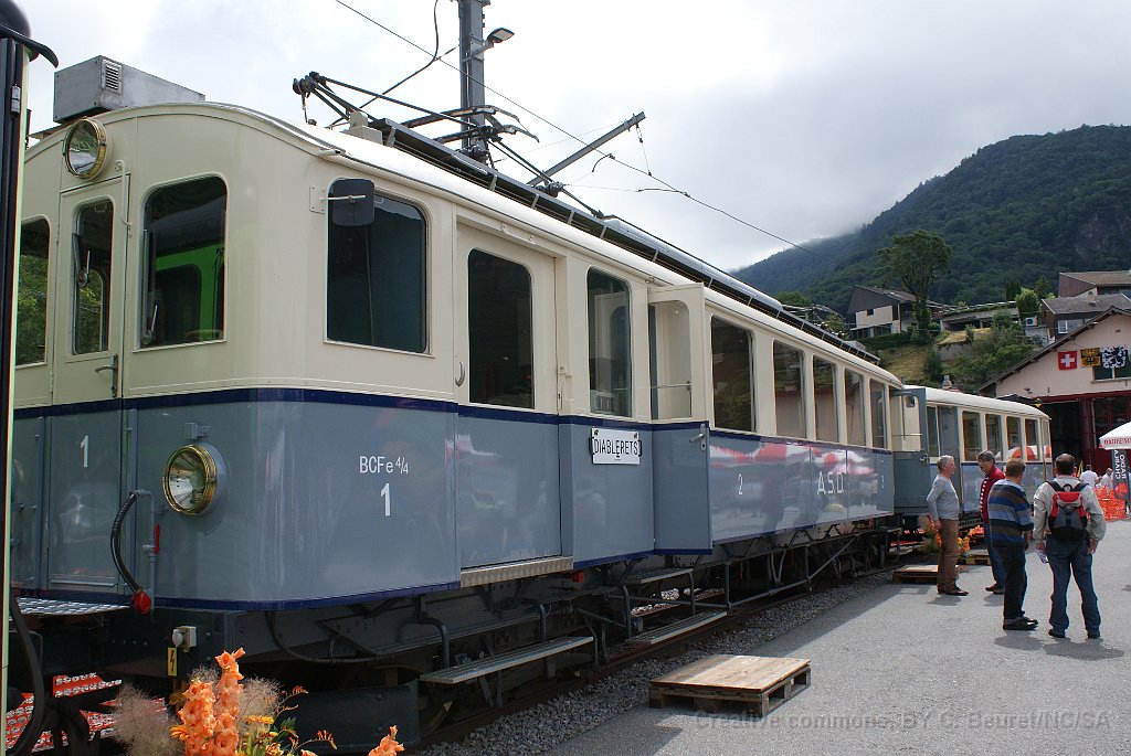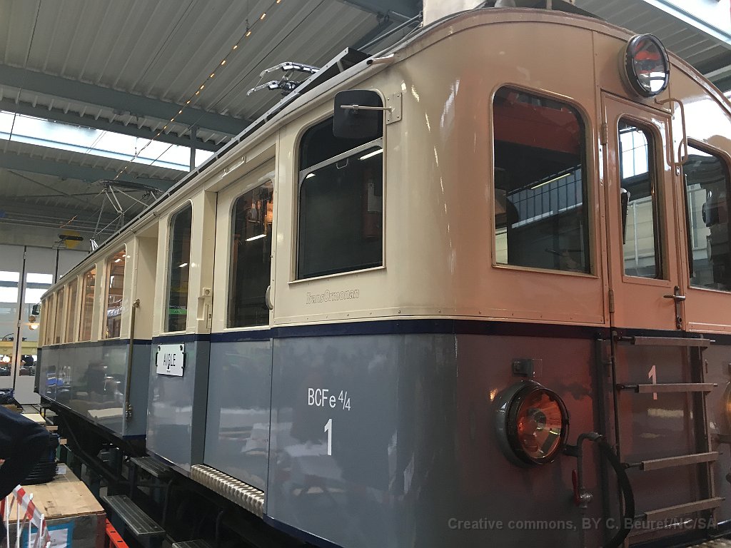 Voiture Transormonans ABDe 4/4 2 en livrée transormonans à Aigle L'ABDe 4/4 1 a reçu les couleurs d'origine à l'occasion du centenaire de la ligne ainsi que sa dénomination initiale BCFe 4/4 Détail du phare La B 34 a aussi été remise aux couleurs d'origine Poste de conduite de la BCFe 4/4 1