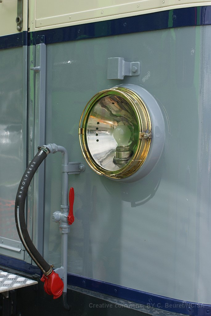 Reflets du château d'Aigle La rame historique lors de la fête du centenaire Un peu de grande-angle La rame historique était malheureusement mal placée pour la photographier L'ABDe 4/4 2 faisait les navettes entre la gare d'Aigle et le dépôt ASD où se tenaient les festivités du centenaire On voit bien sur cette photo que c'est un verre rouge qui est utilisé pour signaler la queue du train