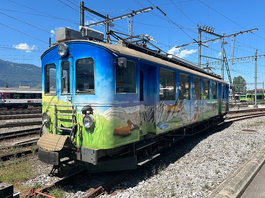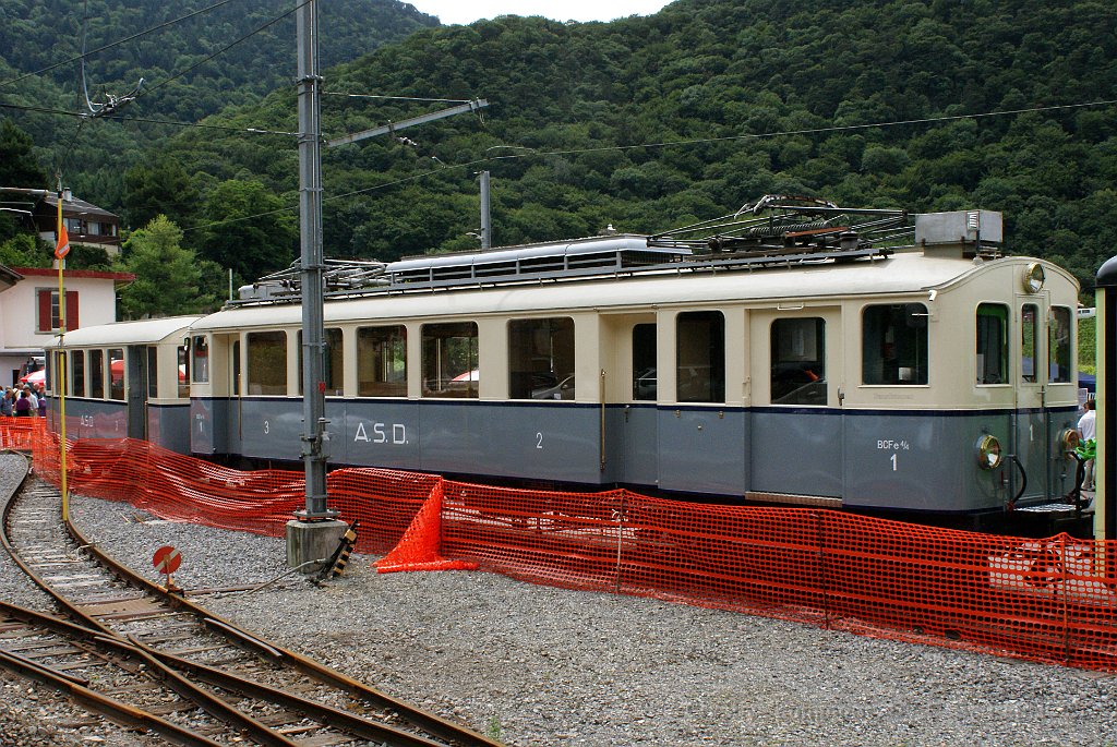 La rame historique et la place des fêtes vus depuis la ligne AL La BCFe 4/4 1 dans le dépôt en Châlex L'ABDe 4/4 2 Transormonans à Aigle