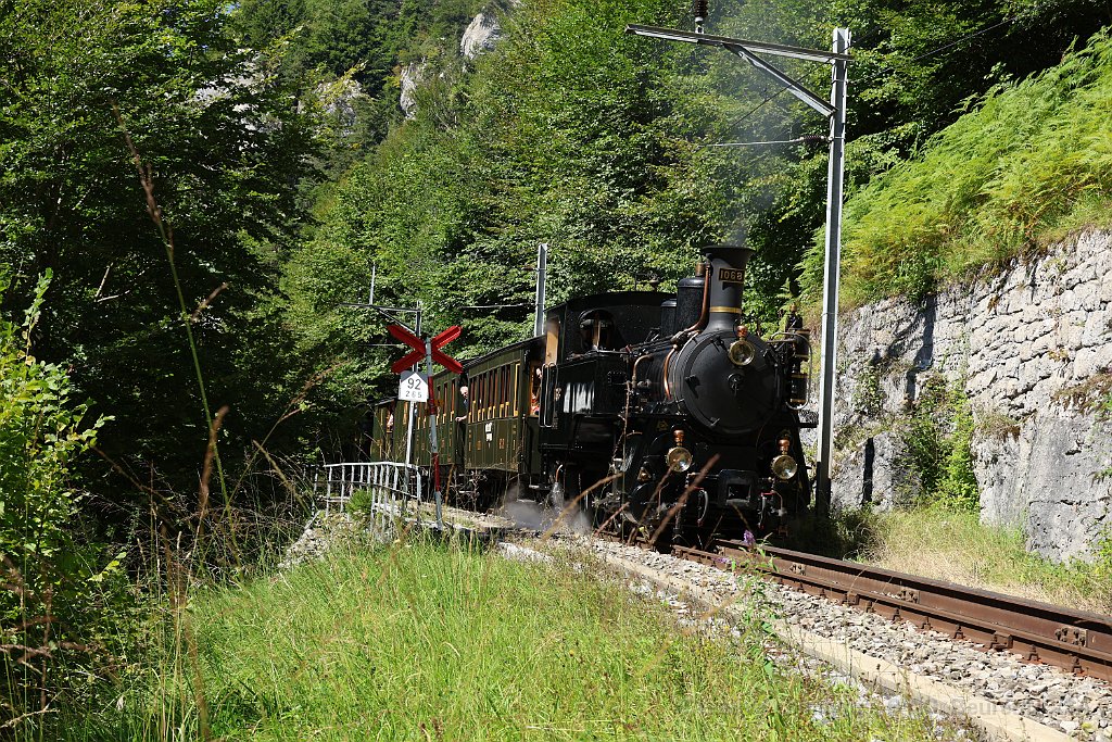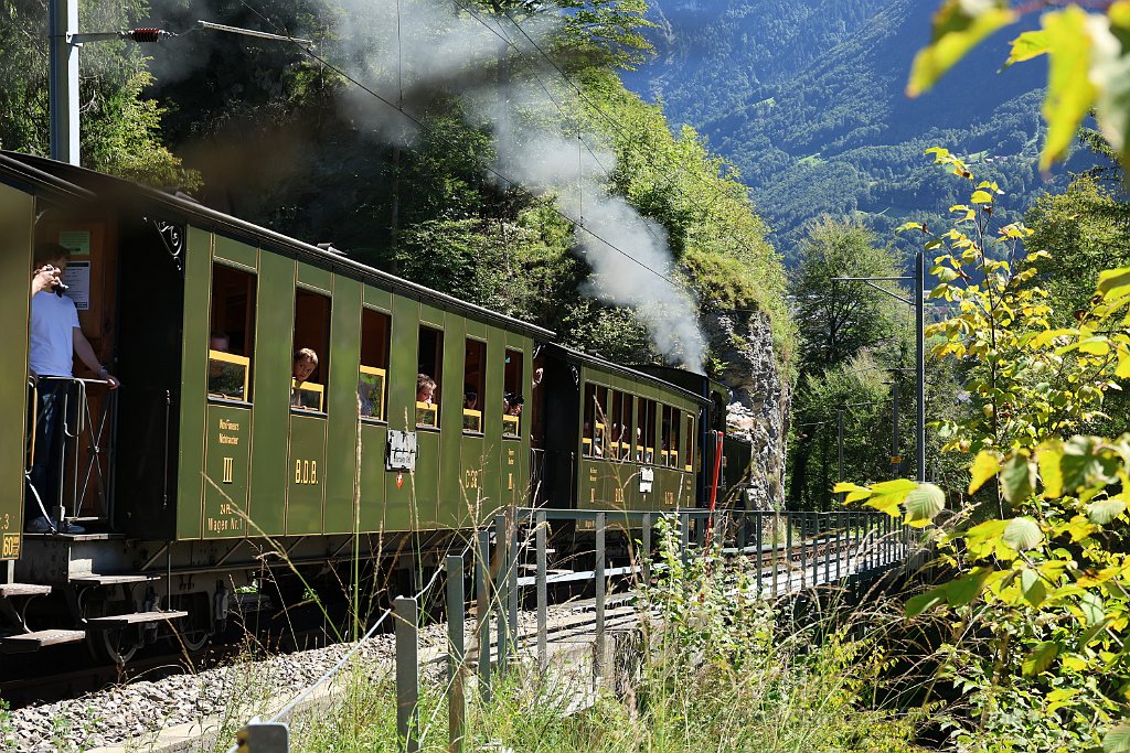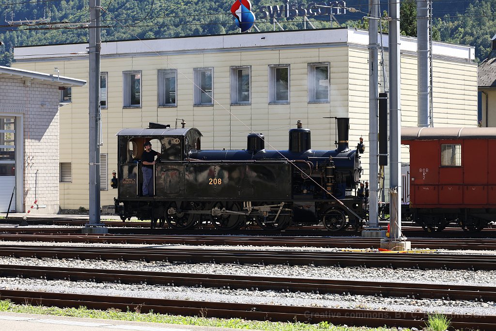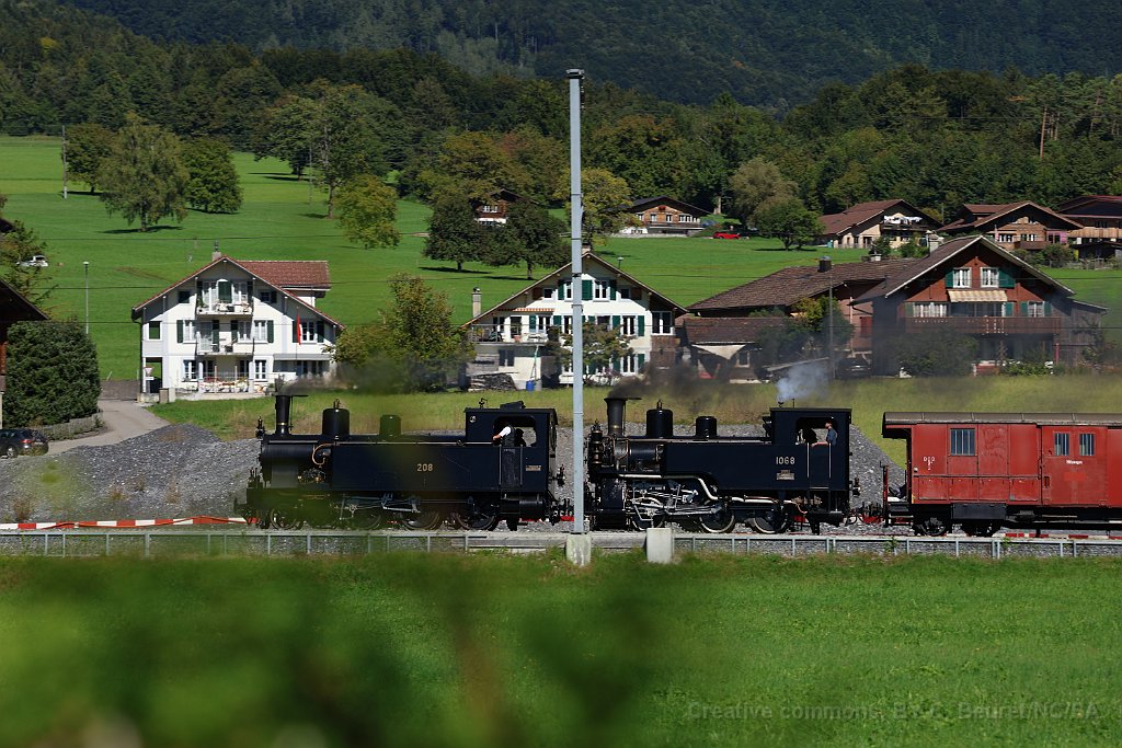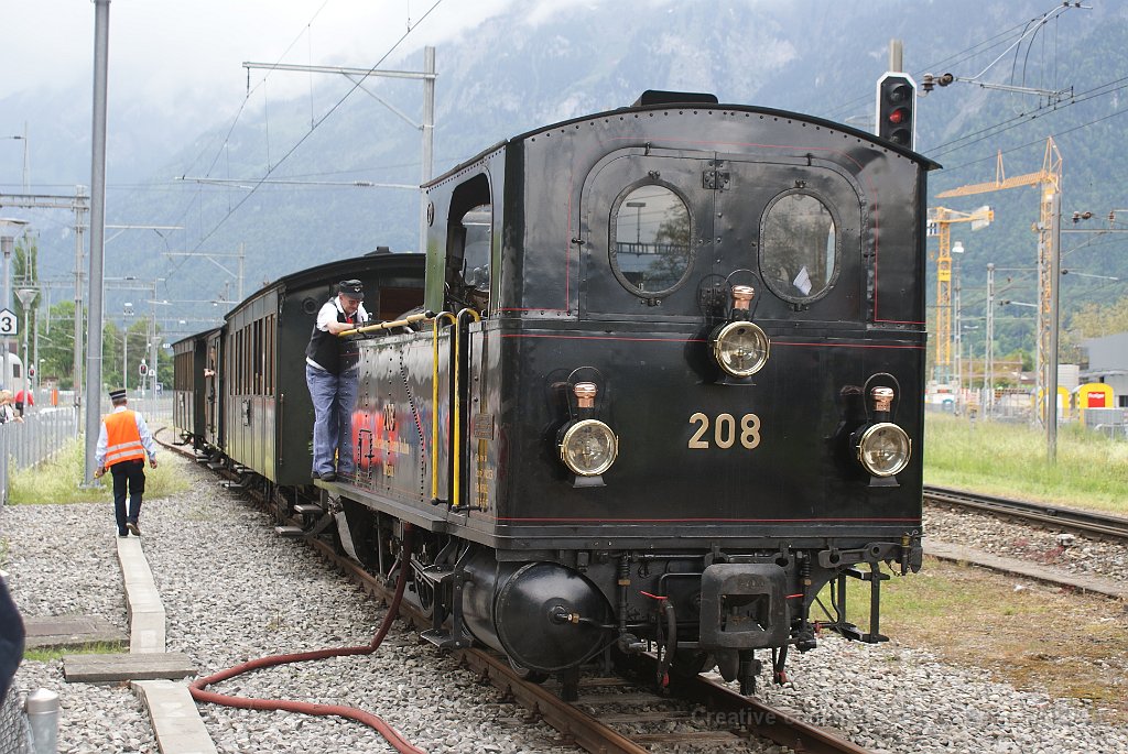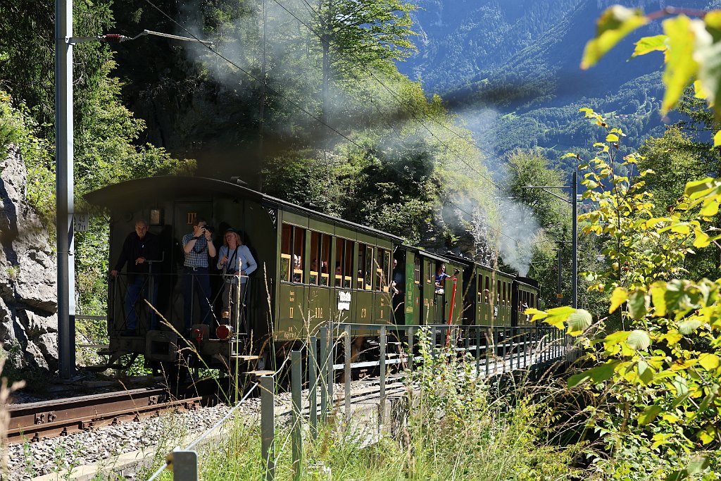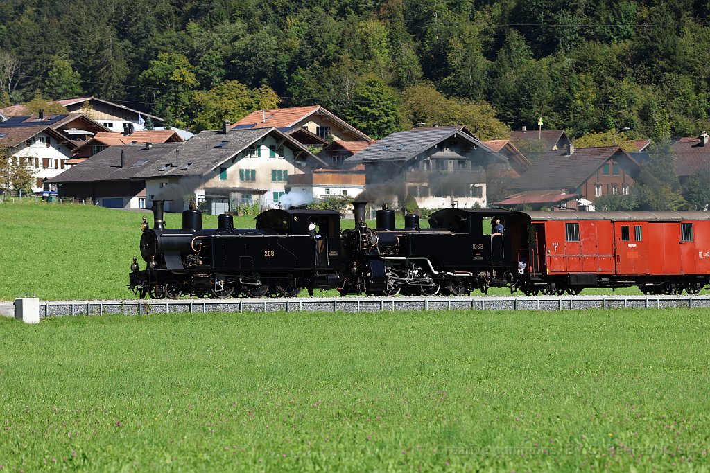 Le train s'engage sur le pont du Hüsenbach La rame dans son ensemble A Meiringen, la G 3/4 208 manoeuvre La HG 3/3 1068 aussi. Elle rouleront en UM jusqu'à Interlaken Ost La rame s'approche de Brienz Elle a reçu un fourgon supplémentaire à Meiringen