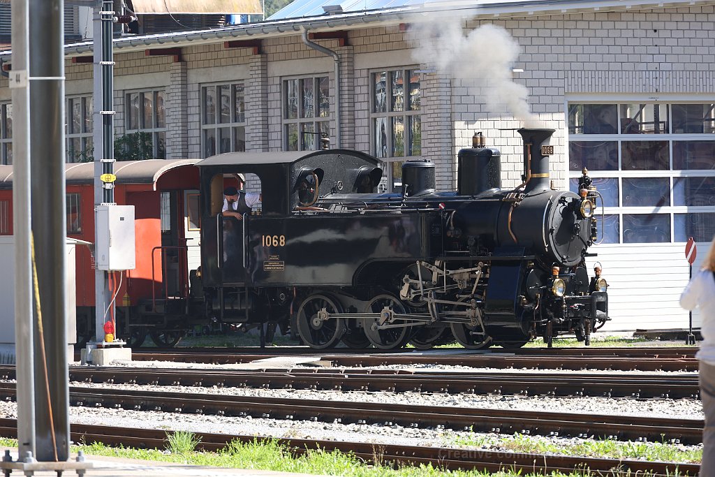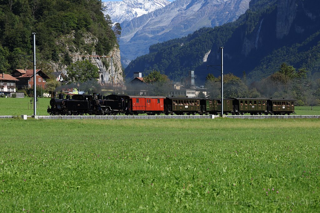 Prise d'eau à Meiringen Maneuvre pour reprendre la tête du train avant de repartir vers Interlaken Ost HG 3/3 1067 devant le dépôt d'Interlaken HG 3/3 1067 HG 3/3 1068 descendant de Brünig-Hasliberg, peu avant d'arriver en plaine Il s'agissait de la course à vapeur du 31.08.2025 Interlaken - Meiringen - Giswil et retour. Photographiée lors du retour