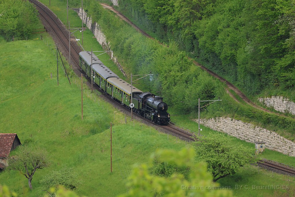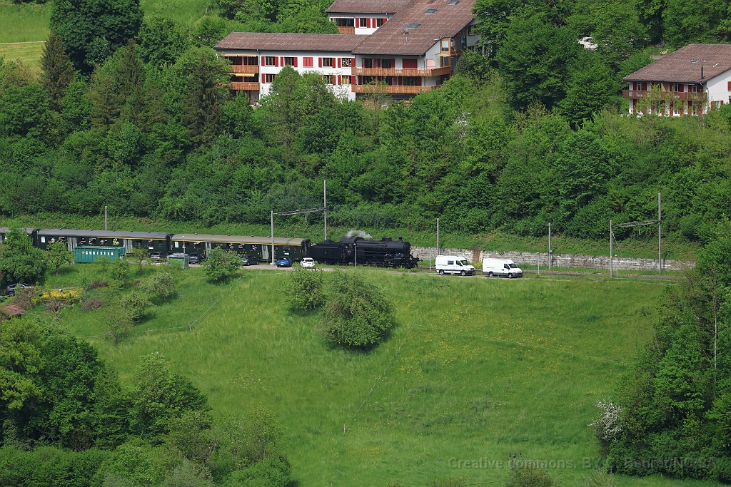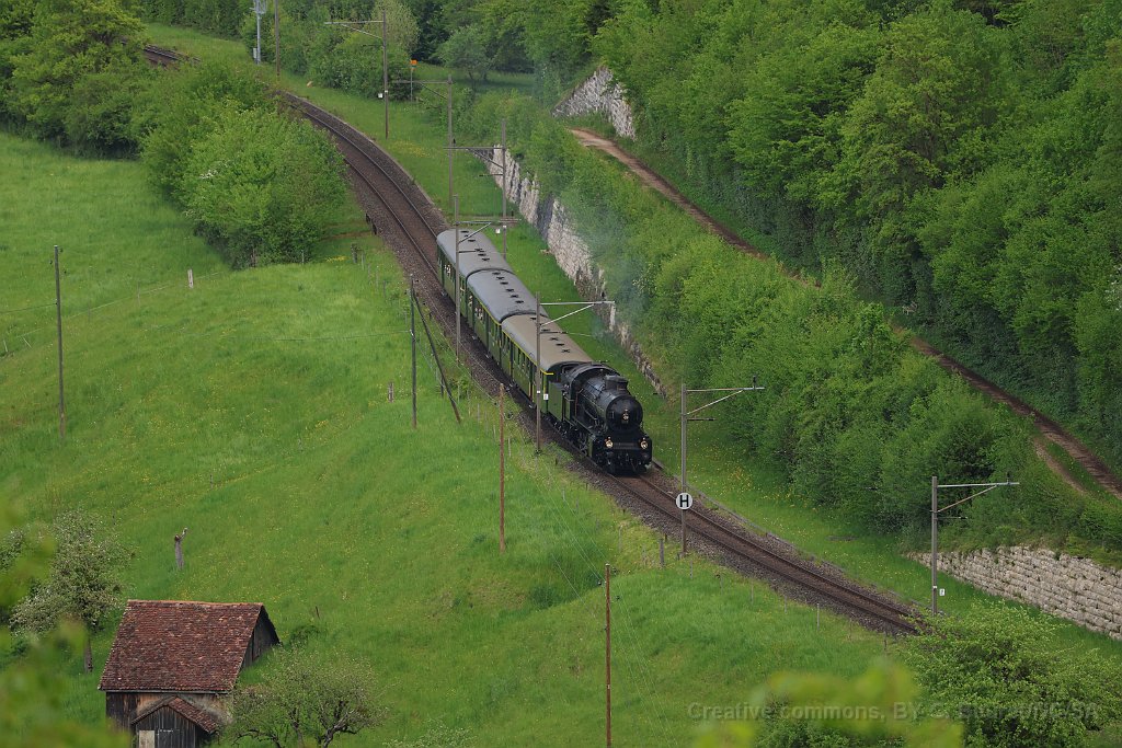 22 Entre Rümligen et Sommerau. Pour les courses de l'après-midi, la locomotive a été tournée, elle est cette fois tender en avant en direction de Sissach