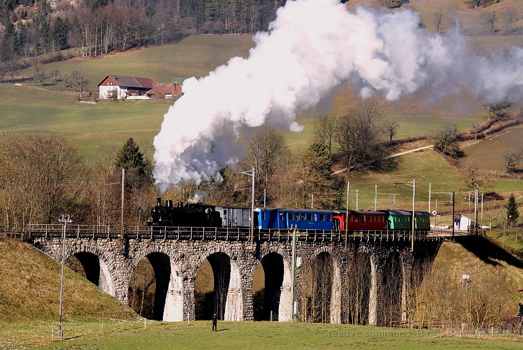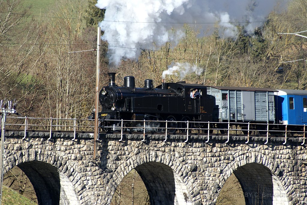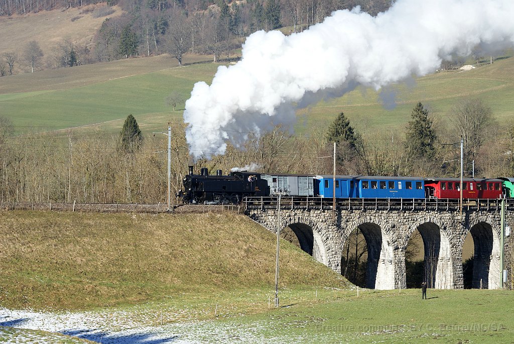 28 l'Ec 4/5 11 s'engage sur le viaduc de Corcelles