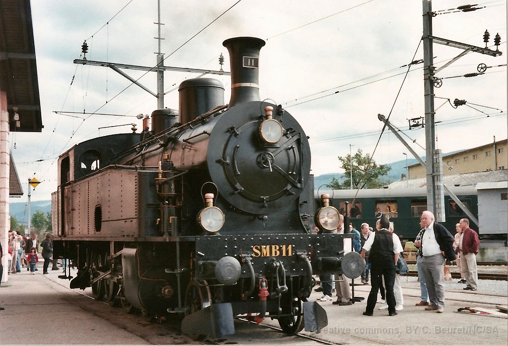 11 Ec 4/5 11 SMB sur sa ligne d'originie avec voitures à plateforme