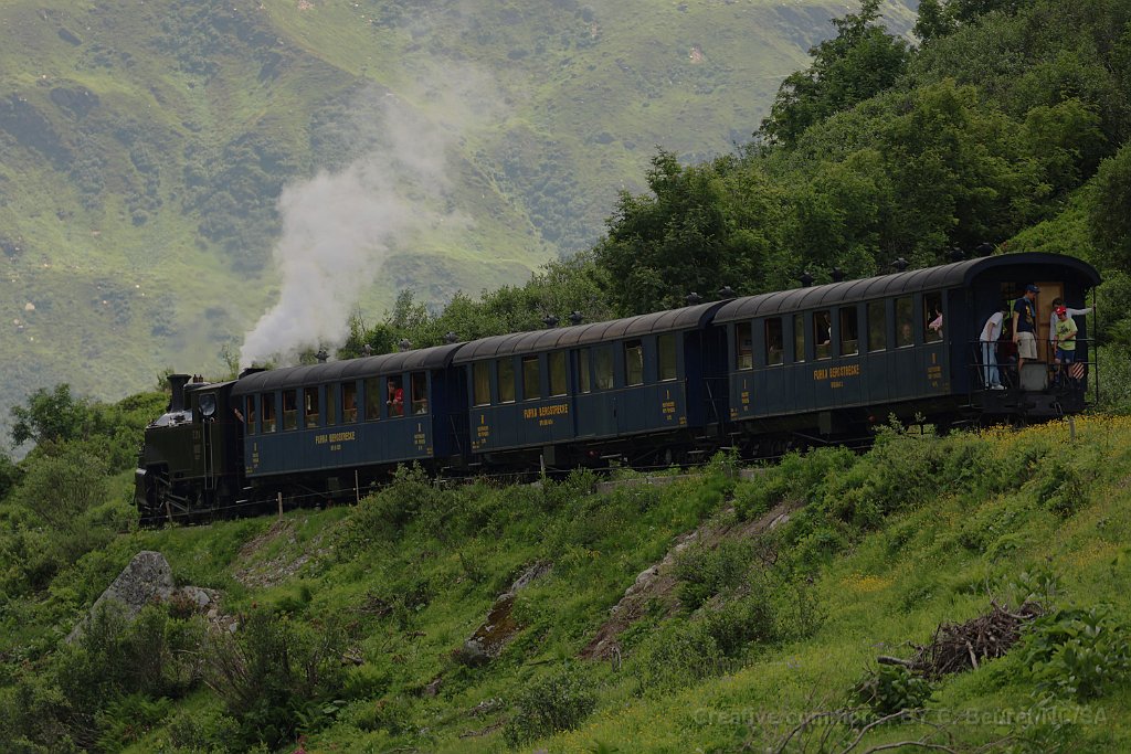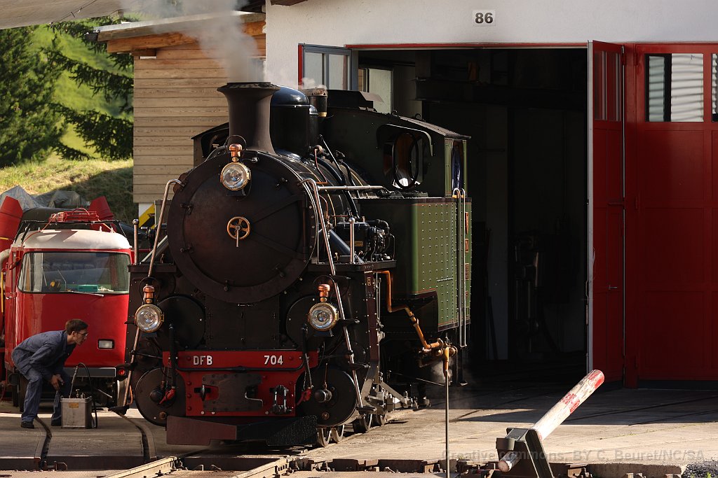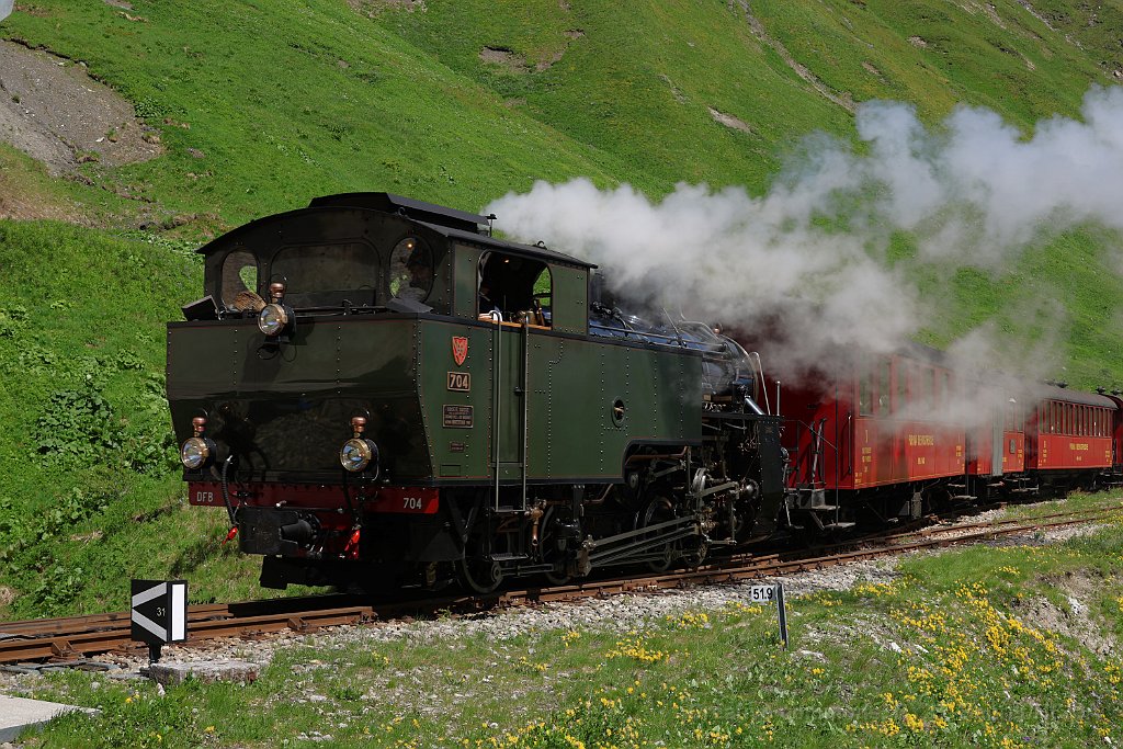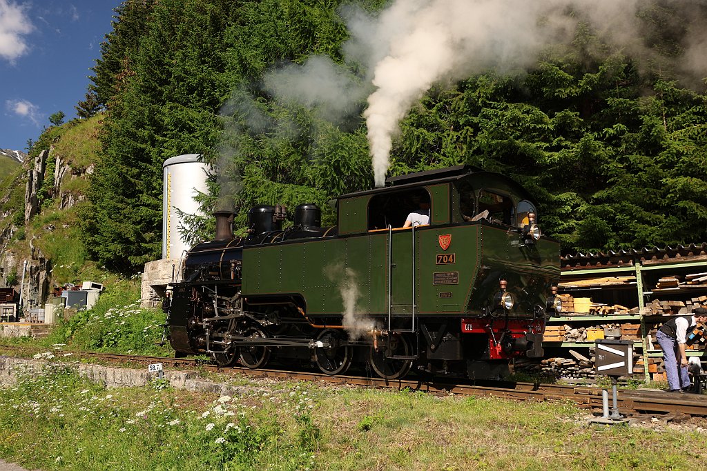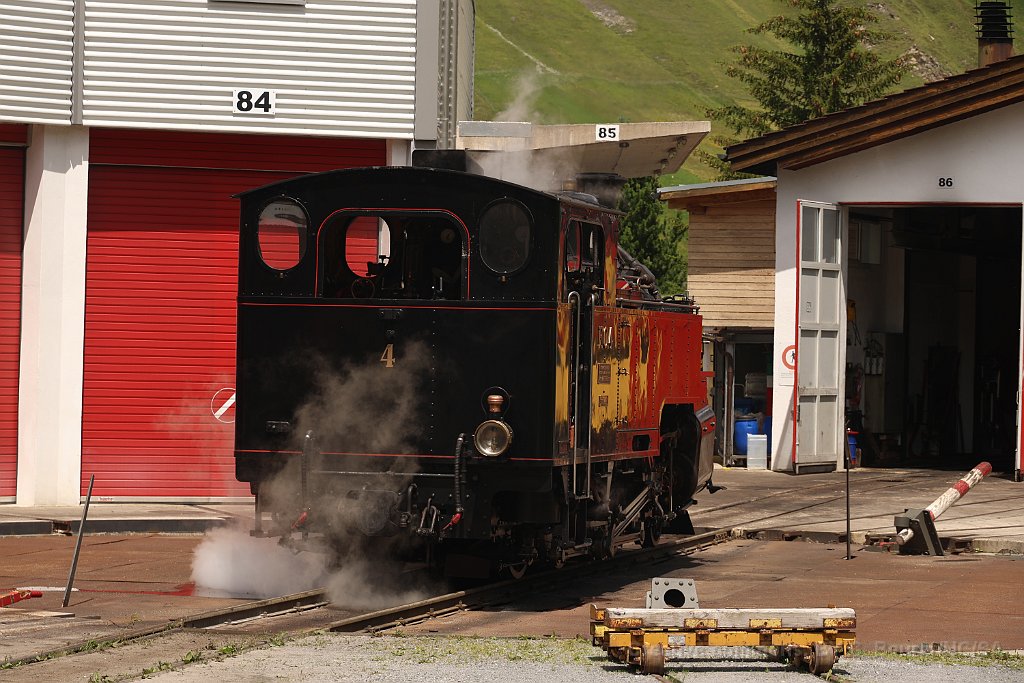 2 Realp DFB dépôt, la HG 4/4 704 sort du dépôt pour aller s'approvisionner en charbon et eau